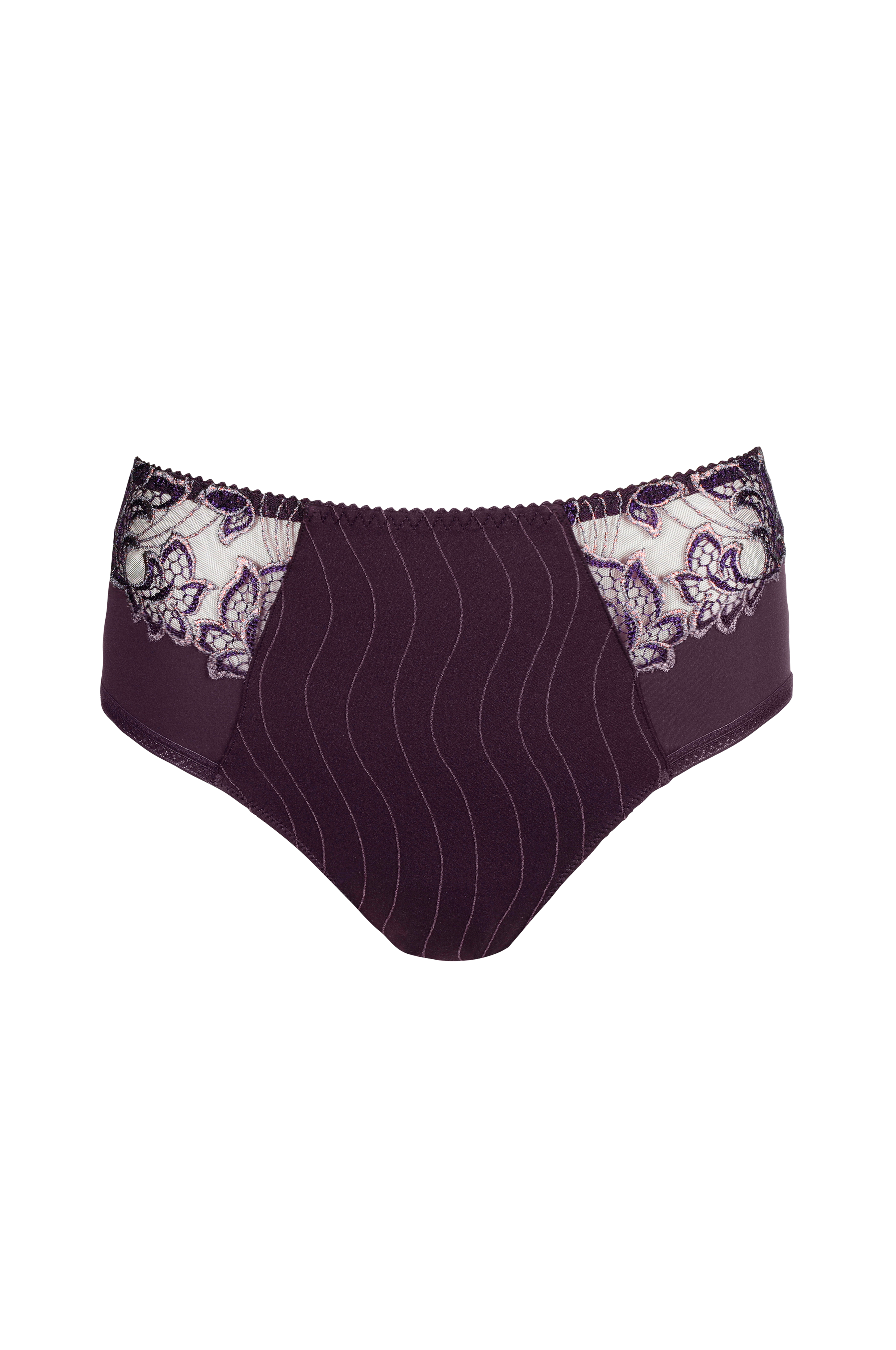 • Gjennomsiktige blonder med skimrende broderi i sidene
