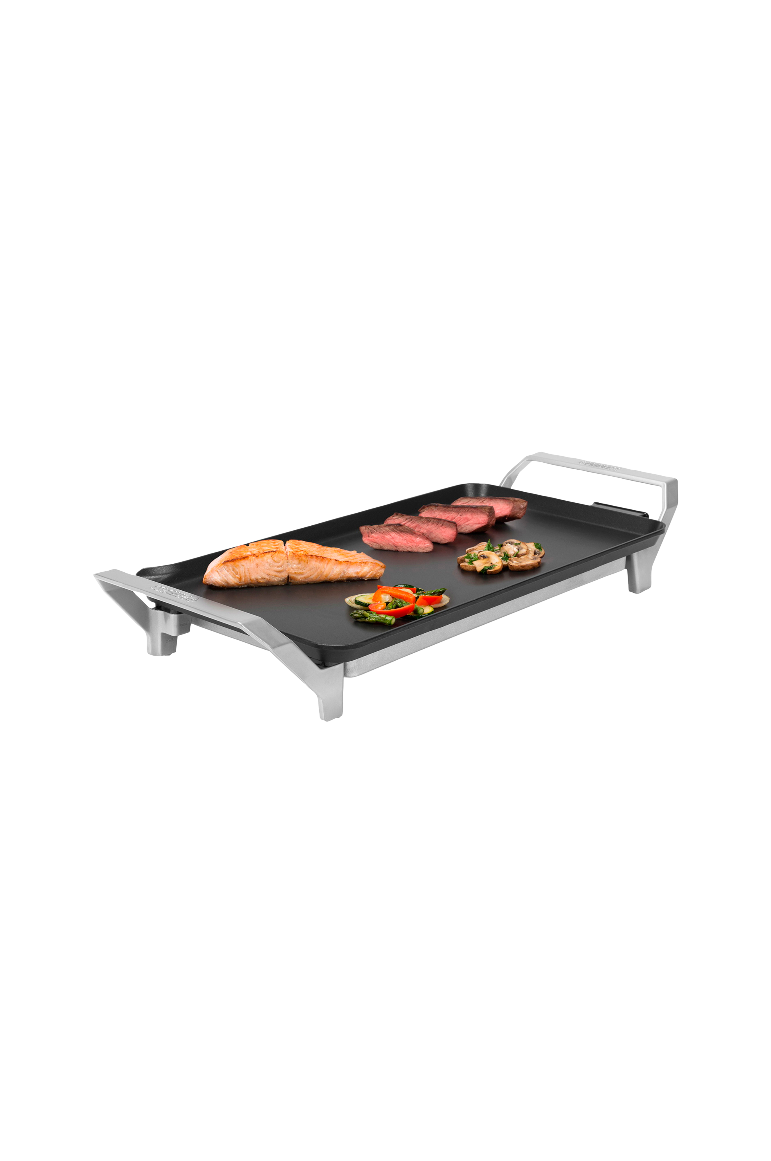 Bordgrill av robust, støpt lettvektsaluminium med spesiallegering for å fordele temperaturen. Slippbelegget av høy kvalitet gjør at du kan grille uten fett.