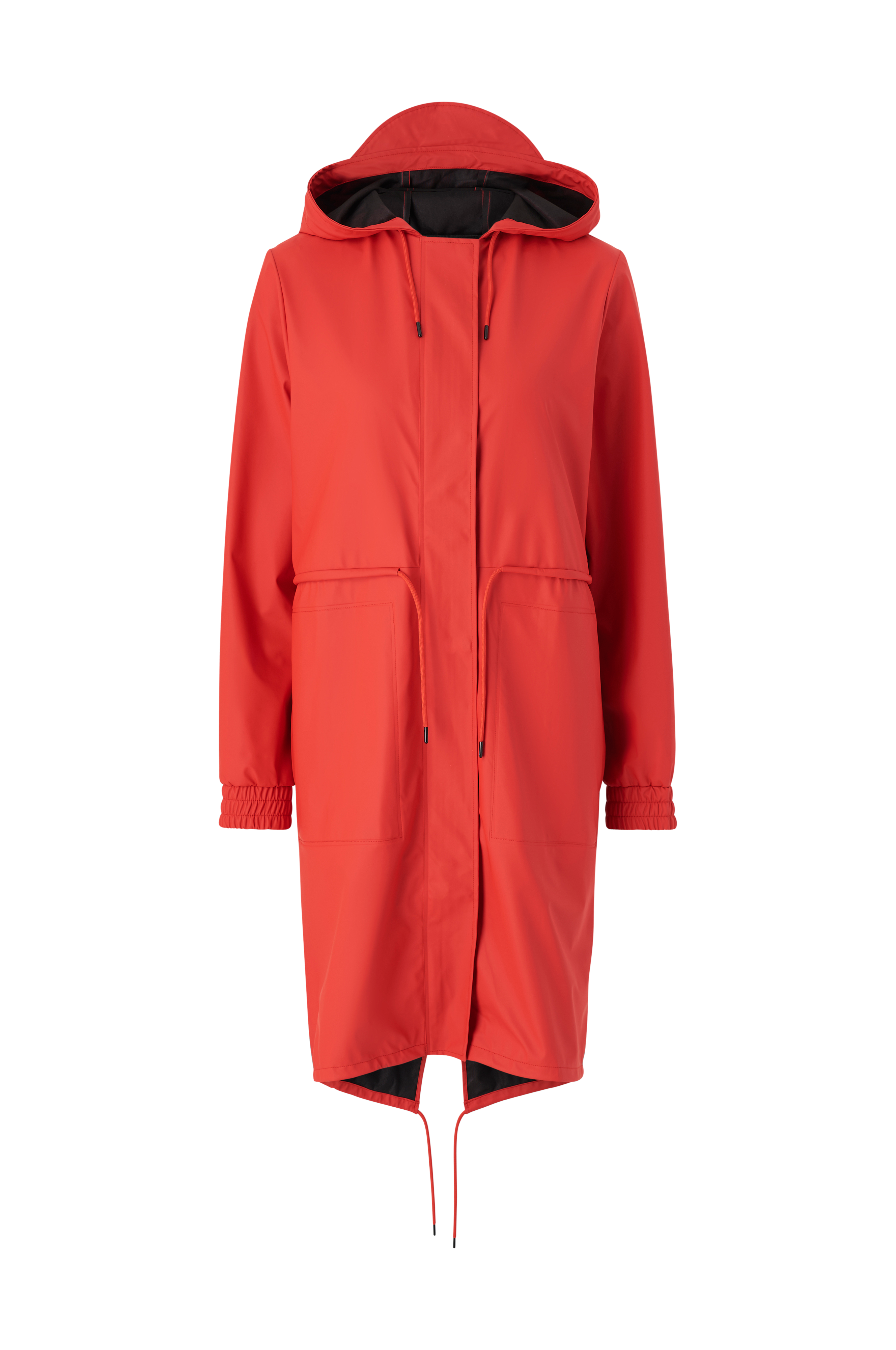 Regnparkas i vanntett og slitesterkt polyesterstoff med PU-belegg og forseglede sømmer. Den er lett, har en myk overflate og et pent fall..