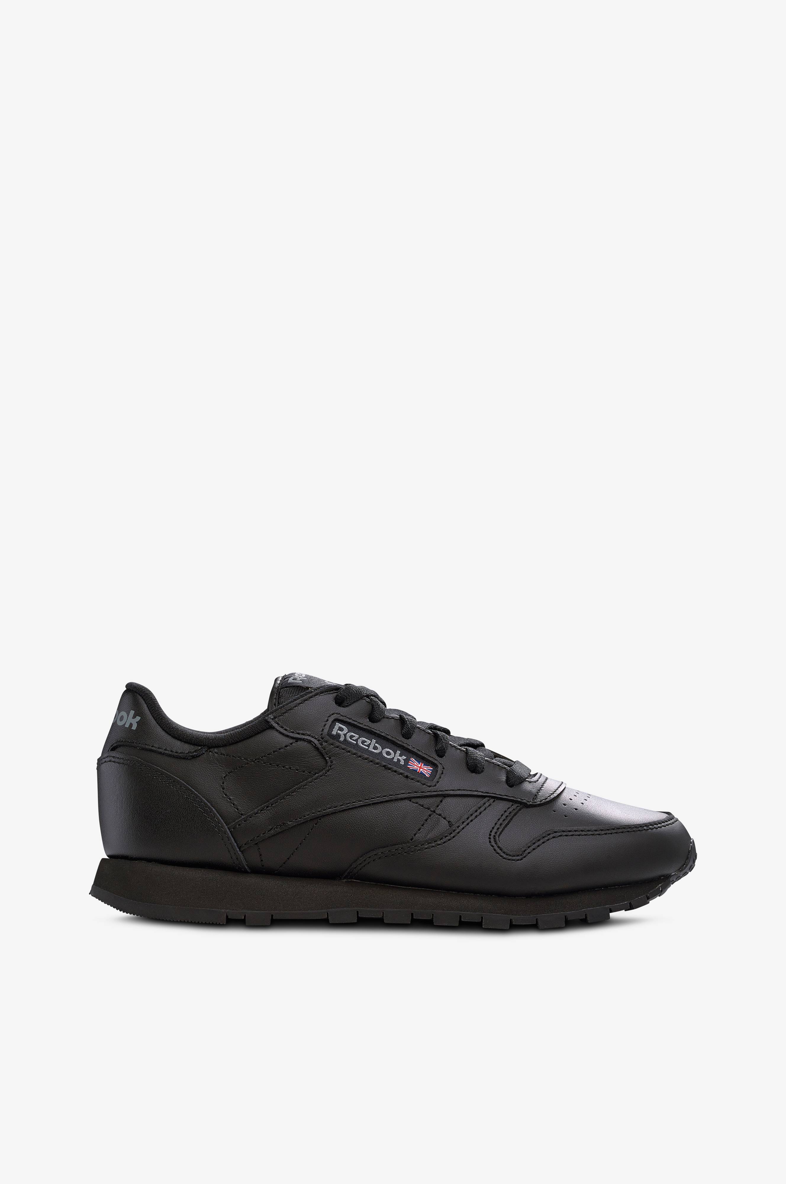 CL LTHR fra Reebok er en herlig sneakers av skinn. Vattert krage, hælkappe og pløse. Pløsen er i tekstil. Behagelig mellomsåle i lettvektig EVA med bra svikt og demping.