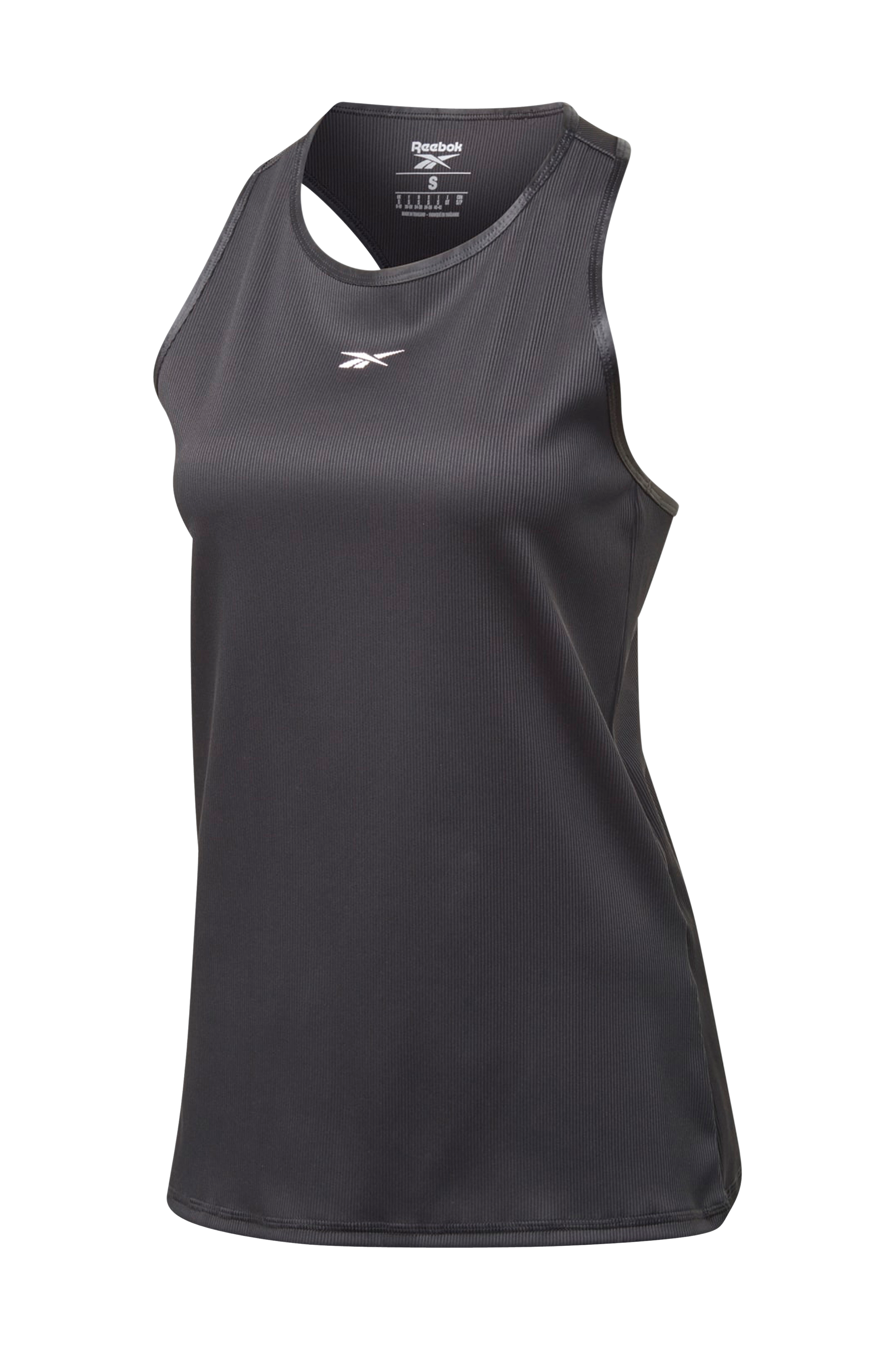 Treningssinglet, Mamma, Studio Maternity Restorative Tank Top fra Reebok Performance. Et mammatrøye designet for trening og yoga under graviditeten. Det ribbestrikkede materialet tilpasser seg den voksende magen. Med Speedwick-teknologi som transporterer bort fukt, og holder huden tørr og sval.