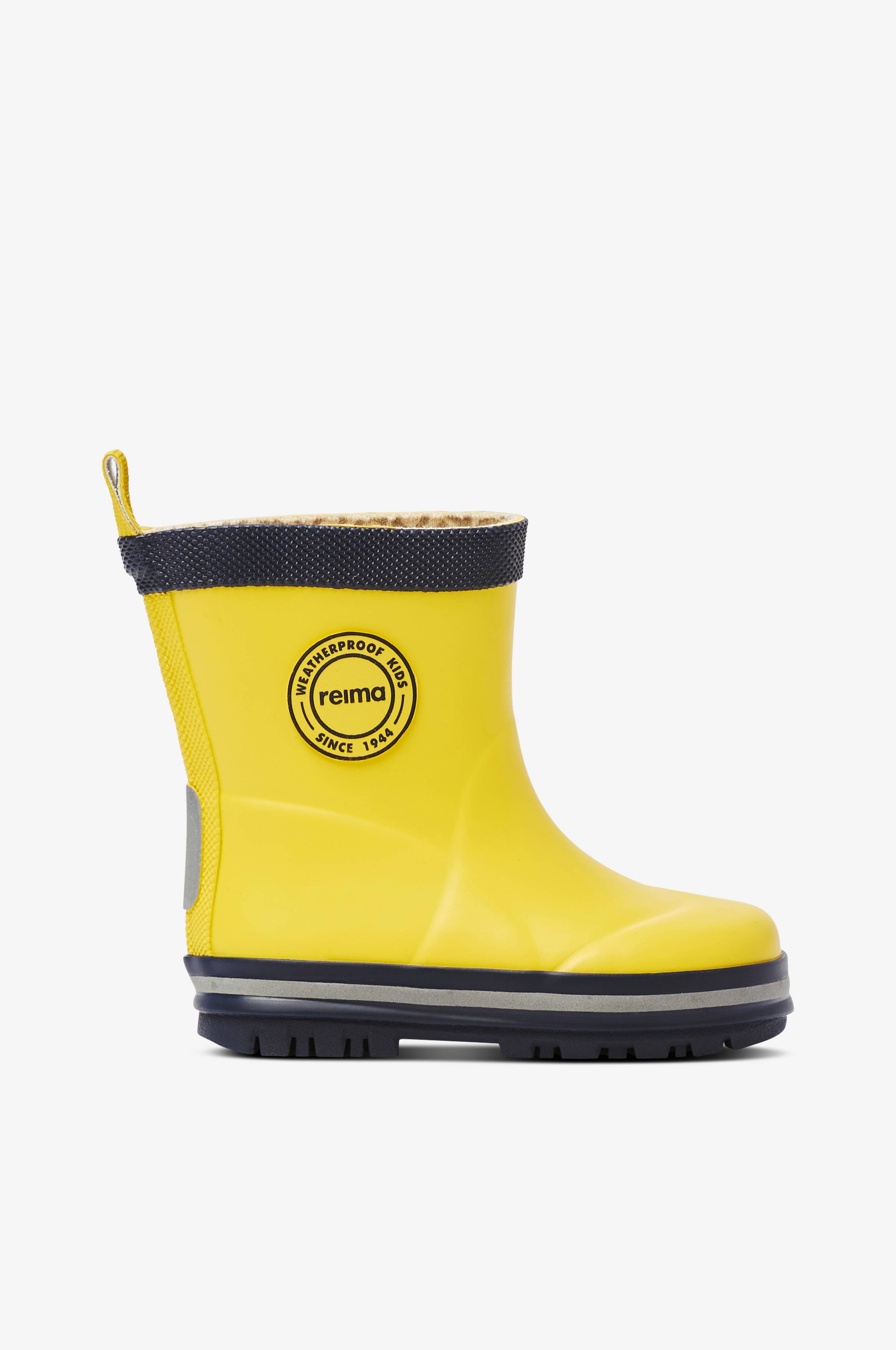 Klassiske vanntette gummistøvler for vår og høst. Fôr i bomullstekstil. Uttagbare innersåler med Happy Fit-trykk som gjør det lett å se om størrelsen er riktig. Yttersålen er laget i vulkanisert gummi uten PVC. Refleksdetaljer.Fluorkarbonfri.