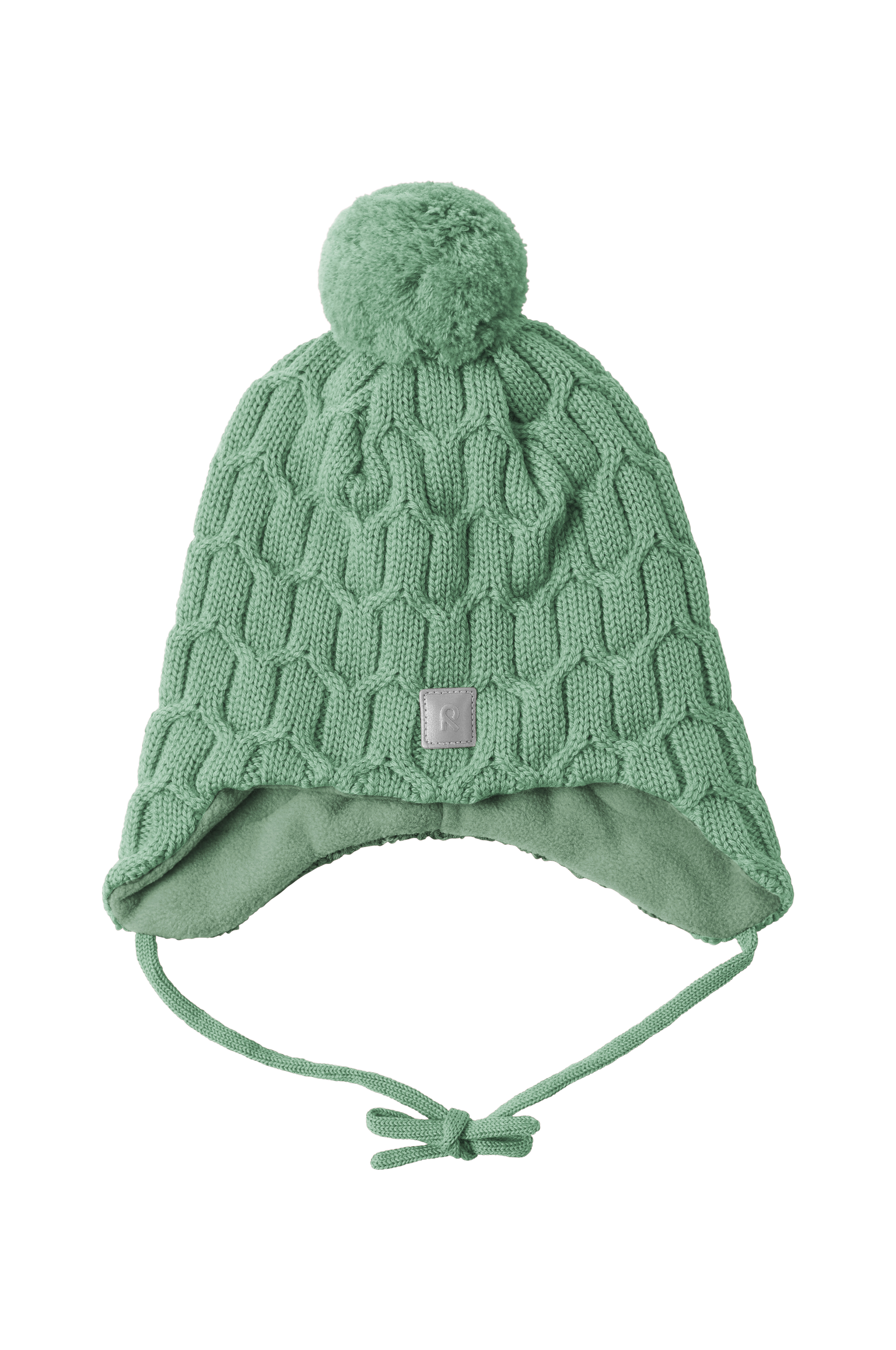 • Strikket lue i myk, varm merinoull• Vindtette øreklaffer• Knytbar tråd under haken• Varm foring i fleece• Pompong• Refleksdetalj foran