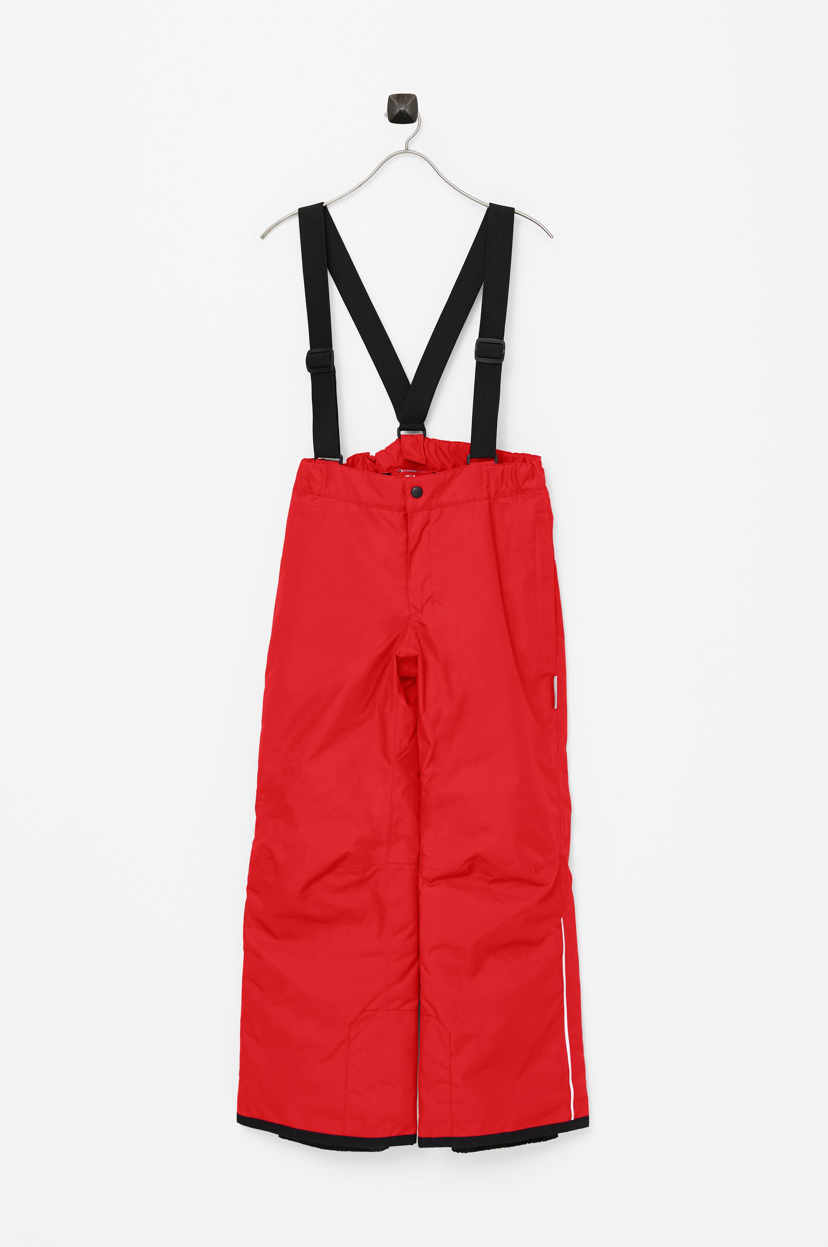 Avtagbare og justerbare seler garanterer en bra passform. Strikklinning med trykknapp og glidelås i gylfen. To sidelommer med glidelås. Slitesterke forsterkninger og snølås i benkantene. Refleksdetaljer.
