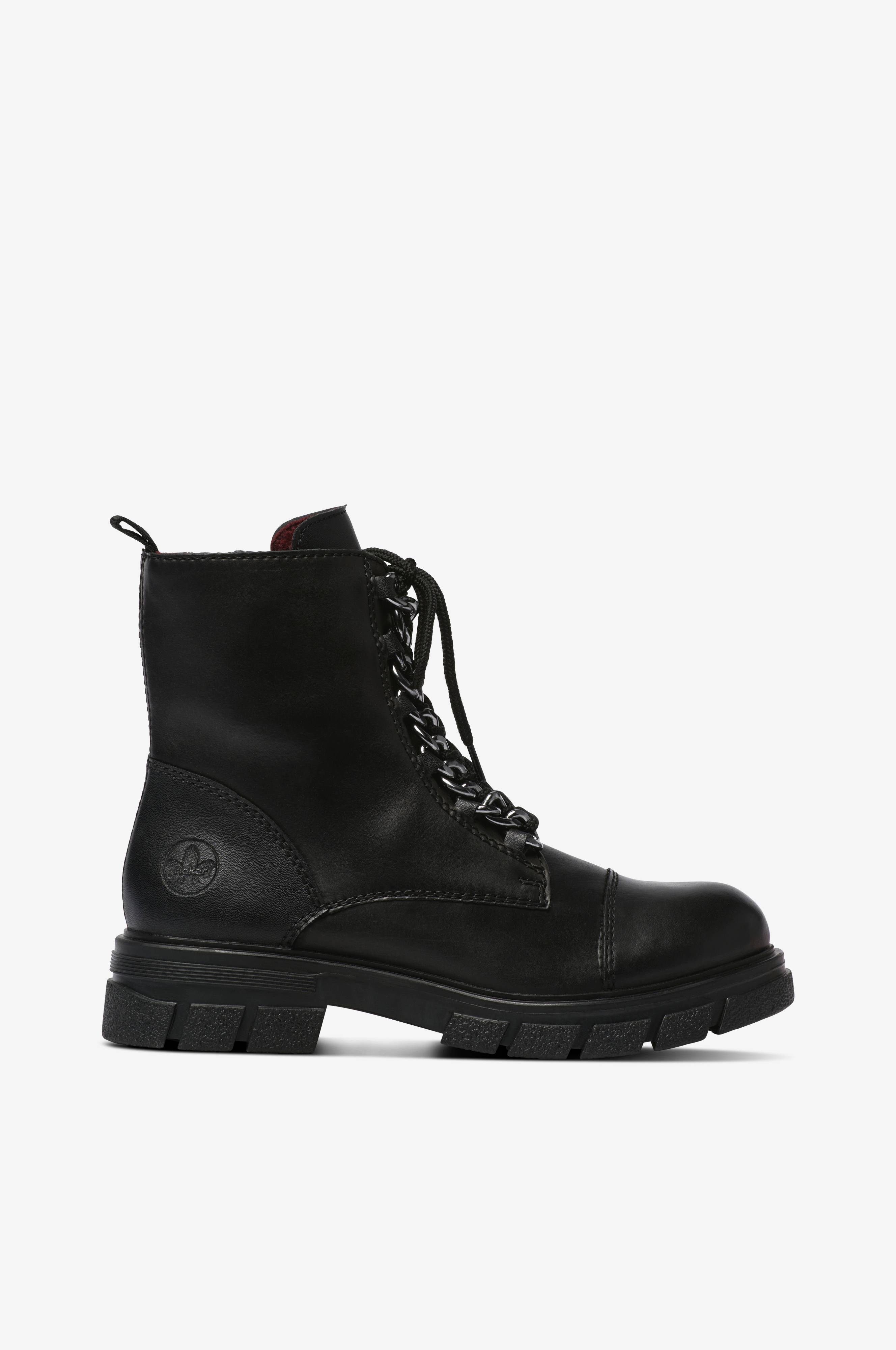 • Modell i skinn• Dekorativ snøring• Glidelås på innsiden• Draflik bakpå• Klumpete yttersåle• Skafthøyde: 15 cm i størrelse 37• Hælhøyde: 4 cm