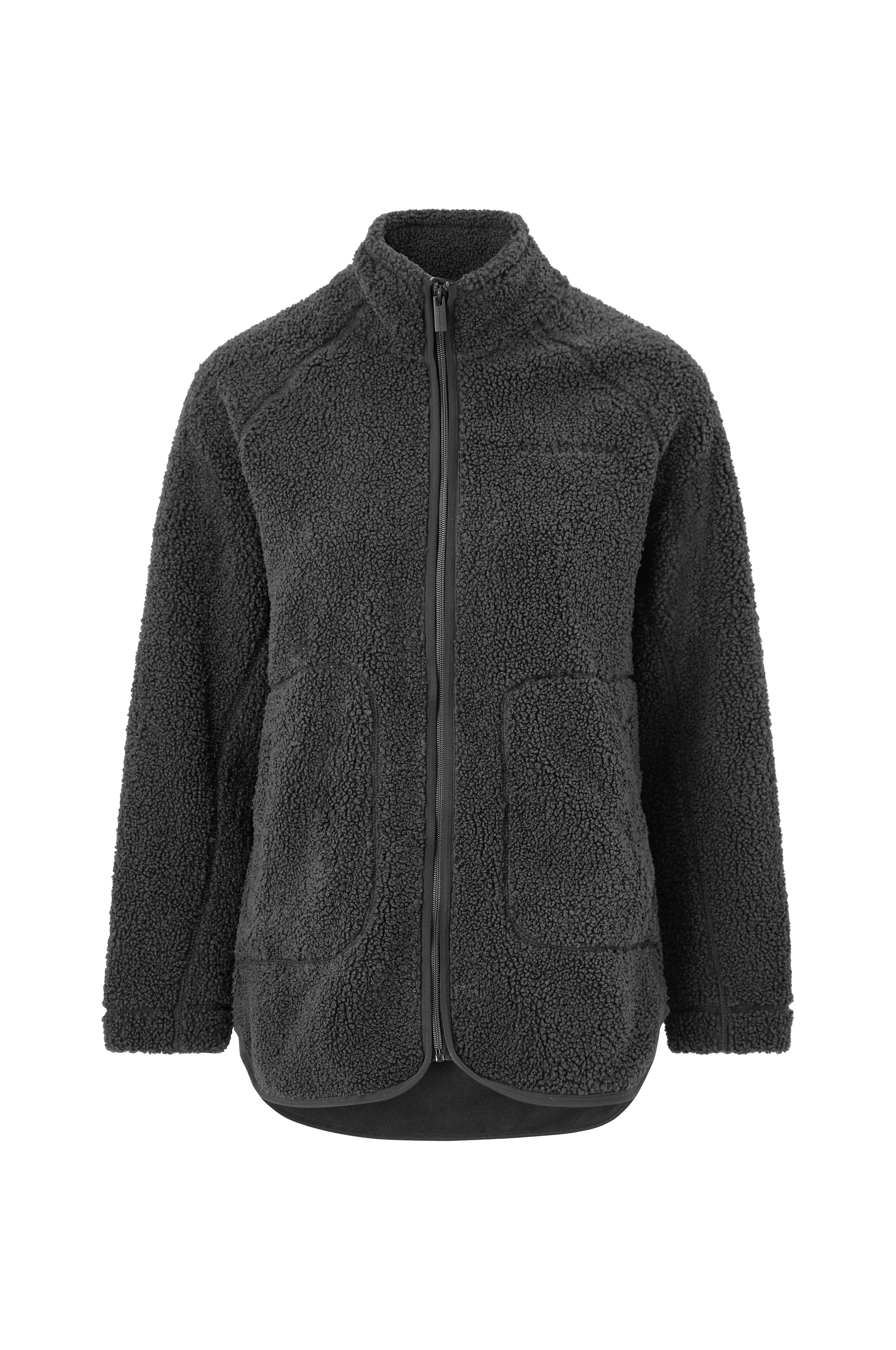• Jakke i myk teddy• Innside i fleece• Høy krage• Lukning med glidelås• Frontlommer med trykknapp• Avrundet hem med litt lengre bakside• Lengde: 78 cm i størrelse XS