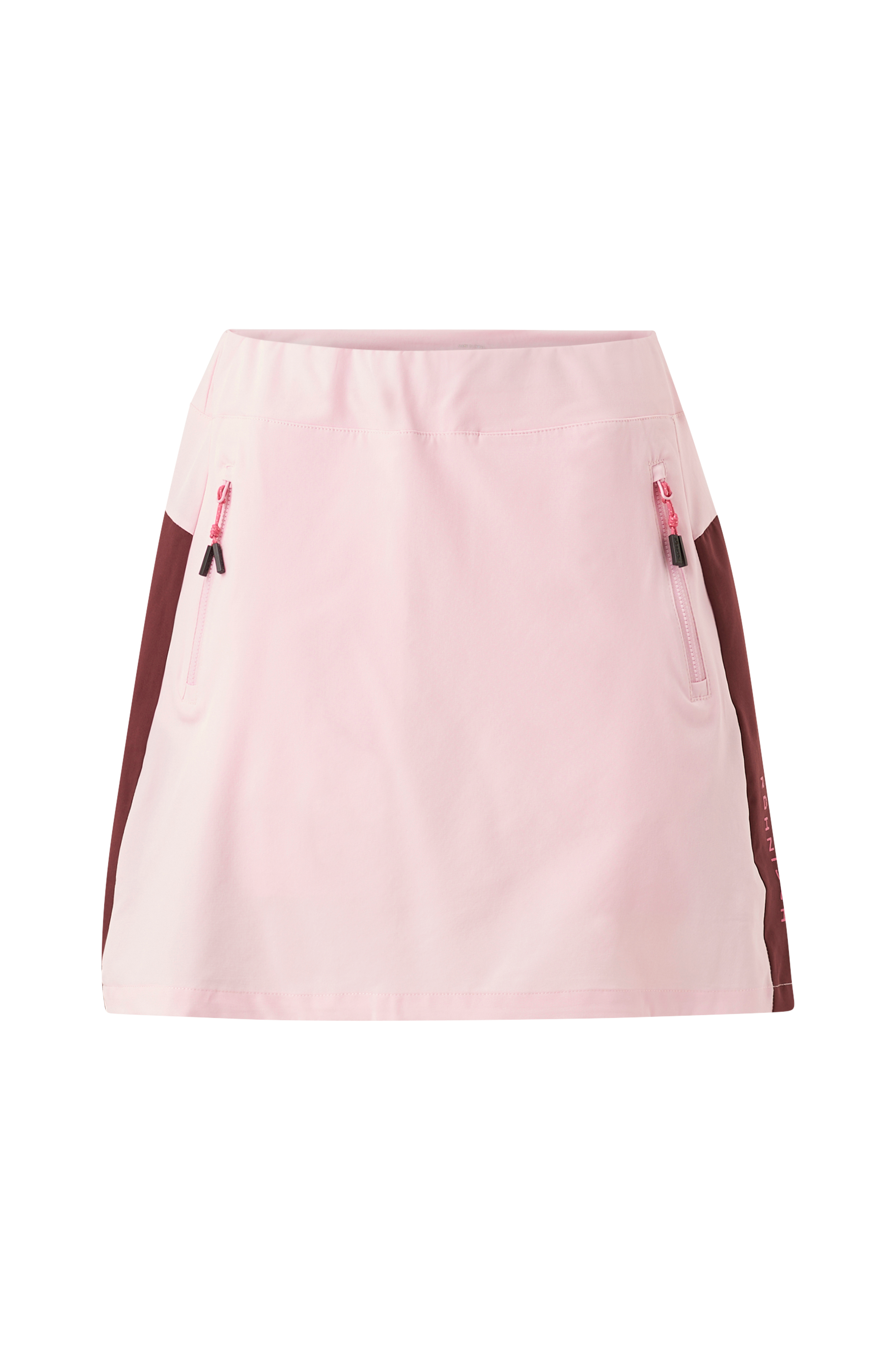 Skjørt i vindtett stoff med herlig toveisstretch. To glidelåslommer foran. Elastisk midje. Tight innerbukse i mesh. Lengde ca. 45 cm i str S.