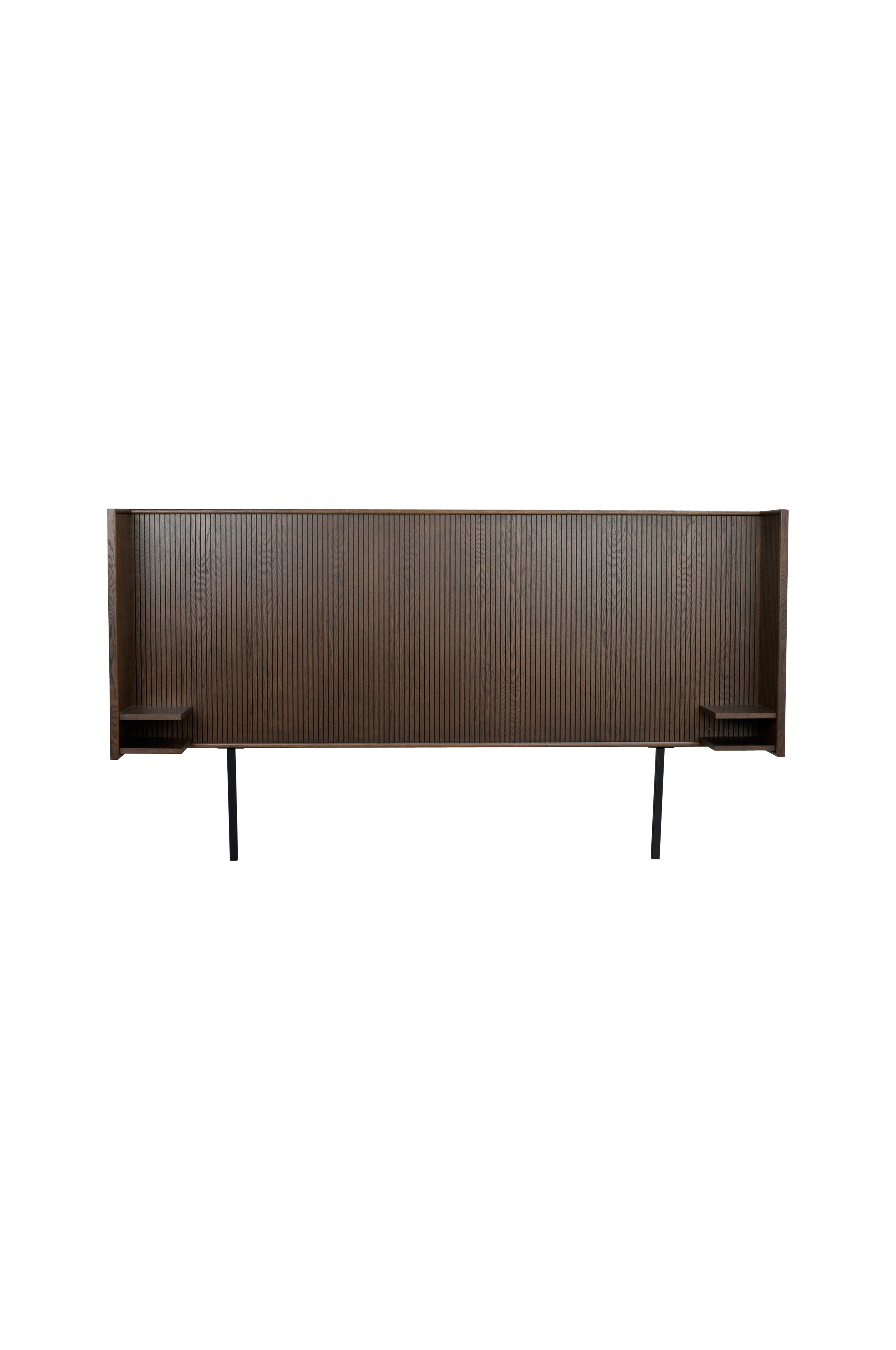 Redmond sengegavl er både elegant og eksklusiv, og gir deg en herlig hotellfølelse på soverommet. Kombiner sengegavlen med pendellamper over de integrerte nattbordene og interiørdetaljer i messing for et ekstra luksuriøst inntrykk. Sengegavlen har et dekorativt ribbet mønster i en fin brun nyanse. Redmond sengegavl passer perfekt til senger som er 180 cm brede. Takket være de justerbare metallbena kan du selv velge høyde på sengegavlen, fra 120 til 145 cm. Inkludert fester for å feste sengegavlen til veggen.