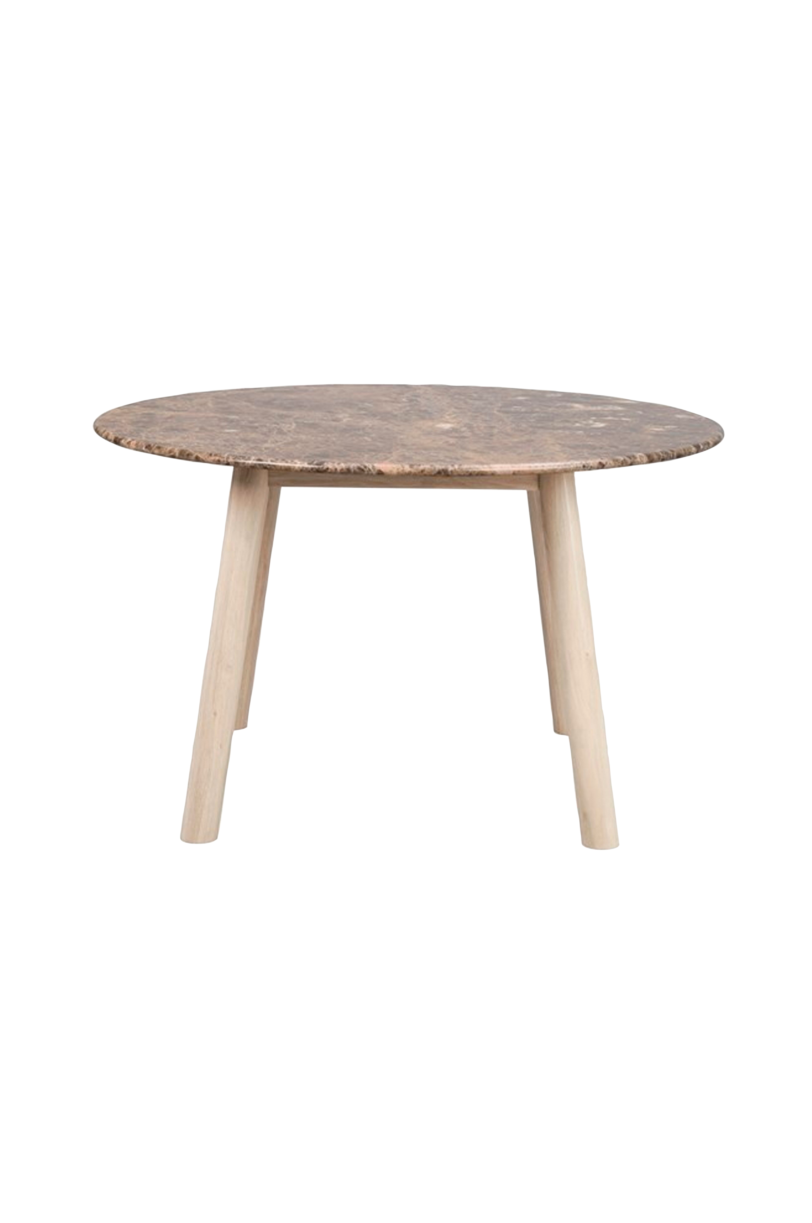 Luksuriøse transa spisebord har en eksklusiv steinplate av ekte Emperador marmor og massive ben av FSC-sertifisert eik. Emperador er en type marmor med fine skiftninger som gir bordet naturlig skjønnhet. Myke former og stilren design gjør spisebordet til et midtpunkt i rommet.