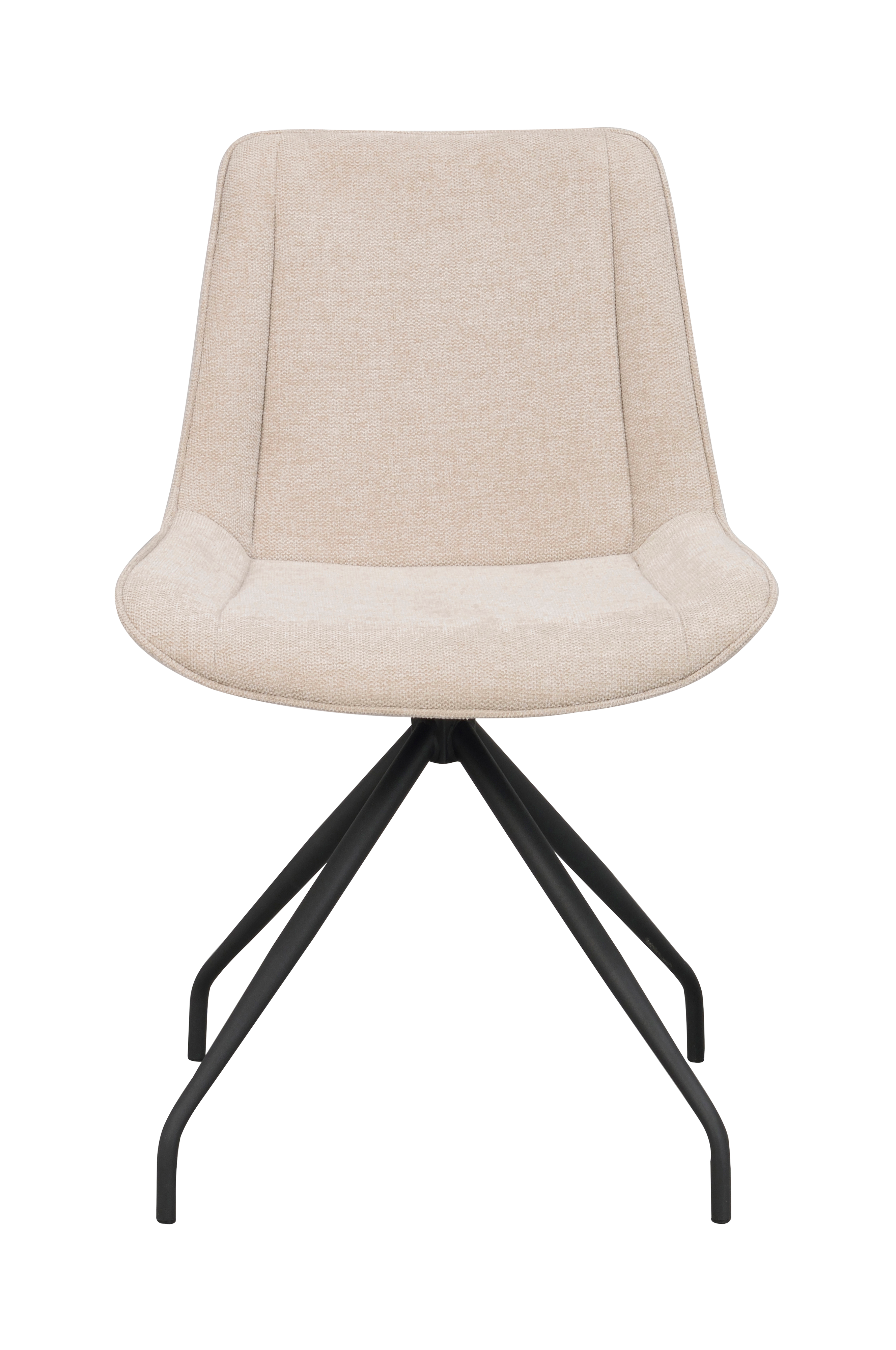 Rossport stol i stoff har fine dekorative sømmer som gir den et elegant stiluttrykk. Benstativet er i pulverlakkert metall med sandtekstur, og har 180° snurrefunksjon. Selges kun i 2-pk.