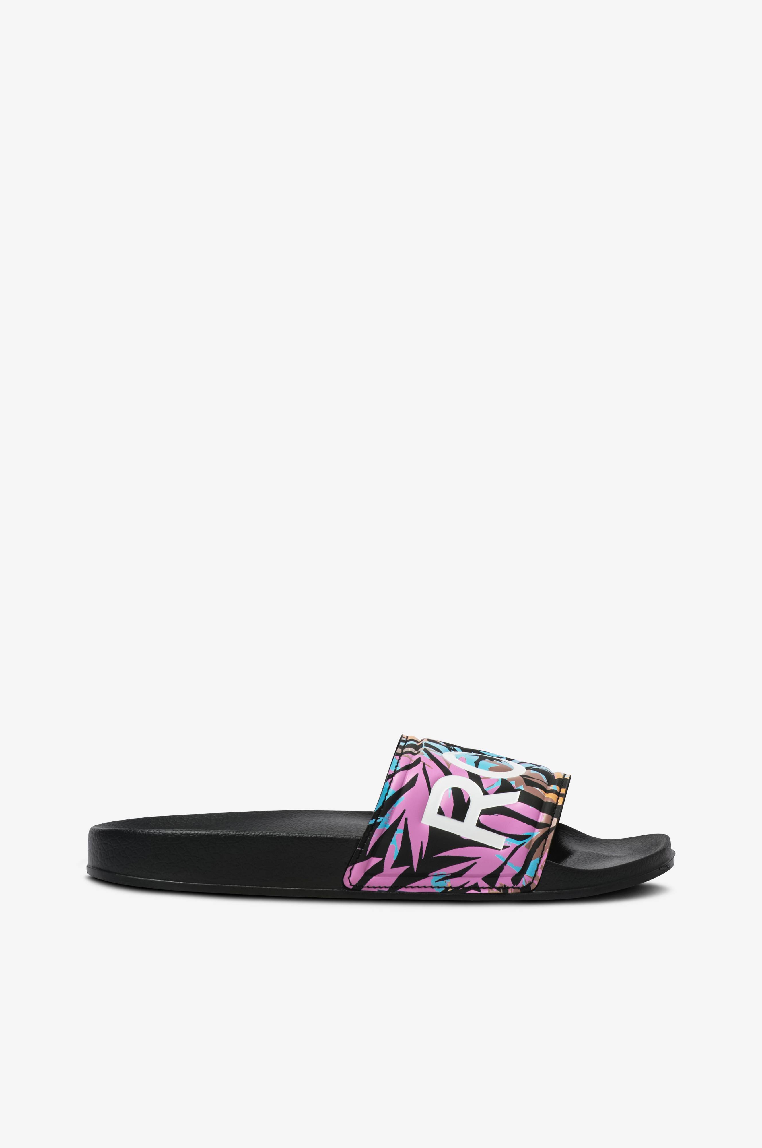Slippers Slippy II fra Roxy. Remmen over foten har lett vattert tekstilfôr. Fotformet såle.