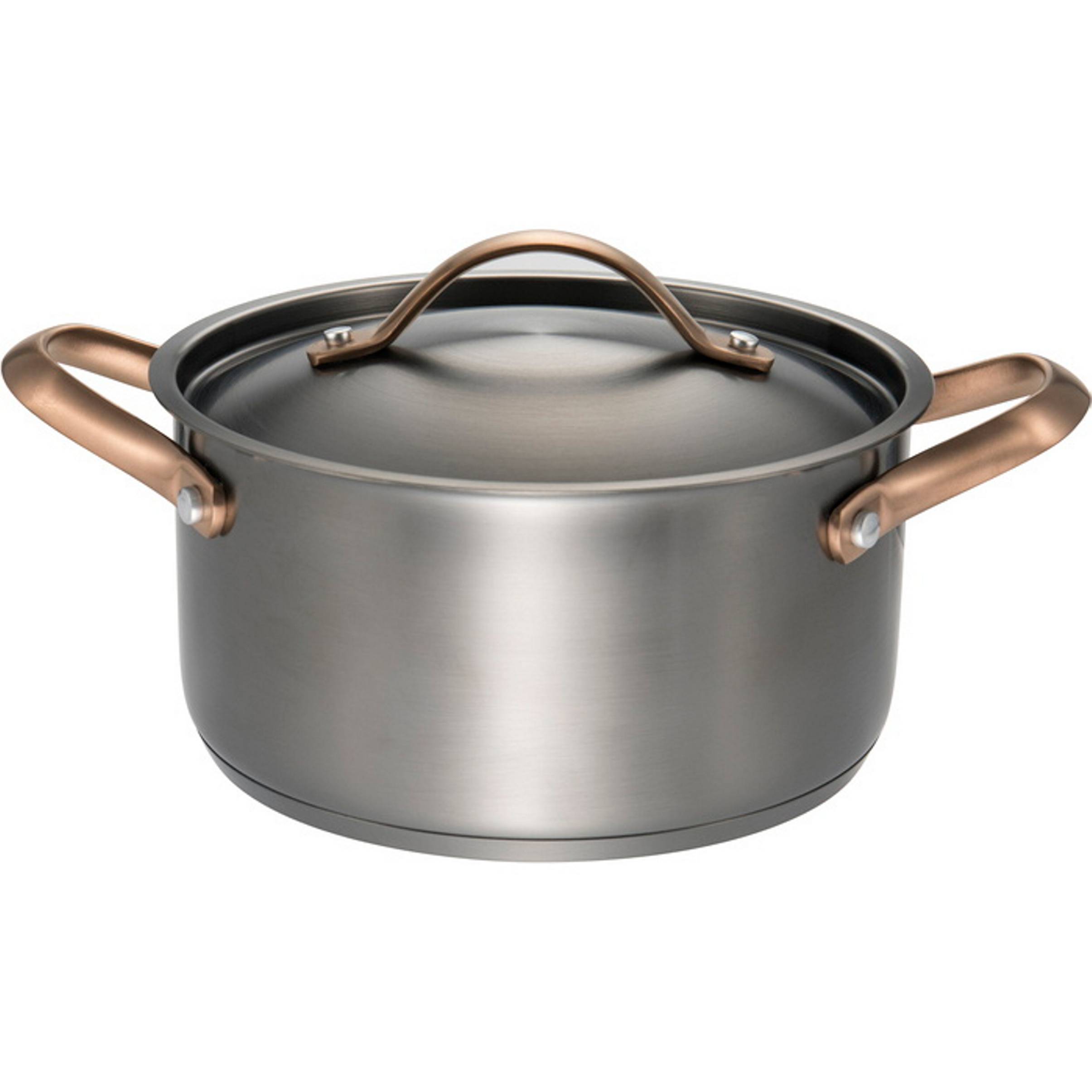 Gryten har et moderne design og en elegant gun metal-finish, en raffinert blanding av svart og grått som skaper et eksklusivt uttrykk. Den er laget av 18/8 rustfritt stål med børstet overflate. Kan vaskes i oppvaskmaskin og tåler stekeovn opp til 270 °C. Bunnen har en 3 mm støpt aluminiumskjerne, noe som gir jevnere oppvarming og redusert energibruk. Veggene er 0,3 mm tykke. Gryten passer til alle kokeplater, og håndtakene er varmeisolerte slik at du kan flytte den uten beskyttelse. Alle typer redskaper kan brukes.