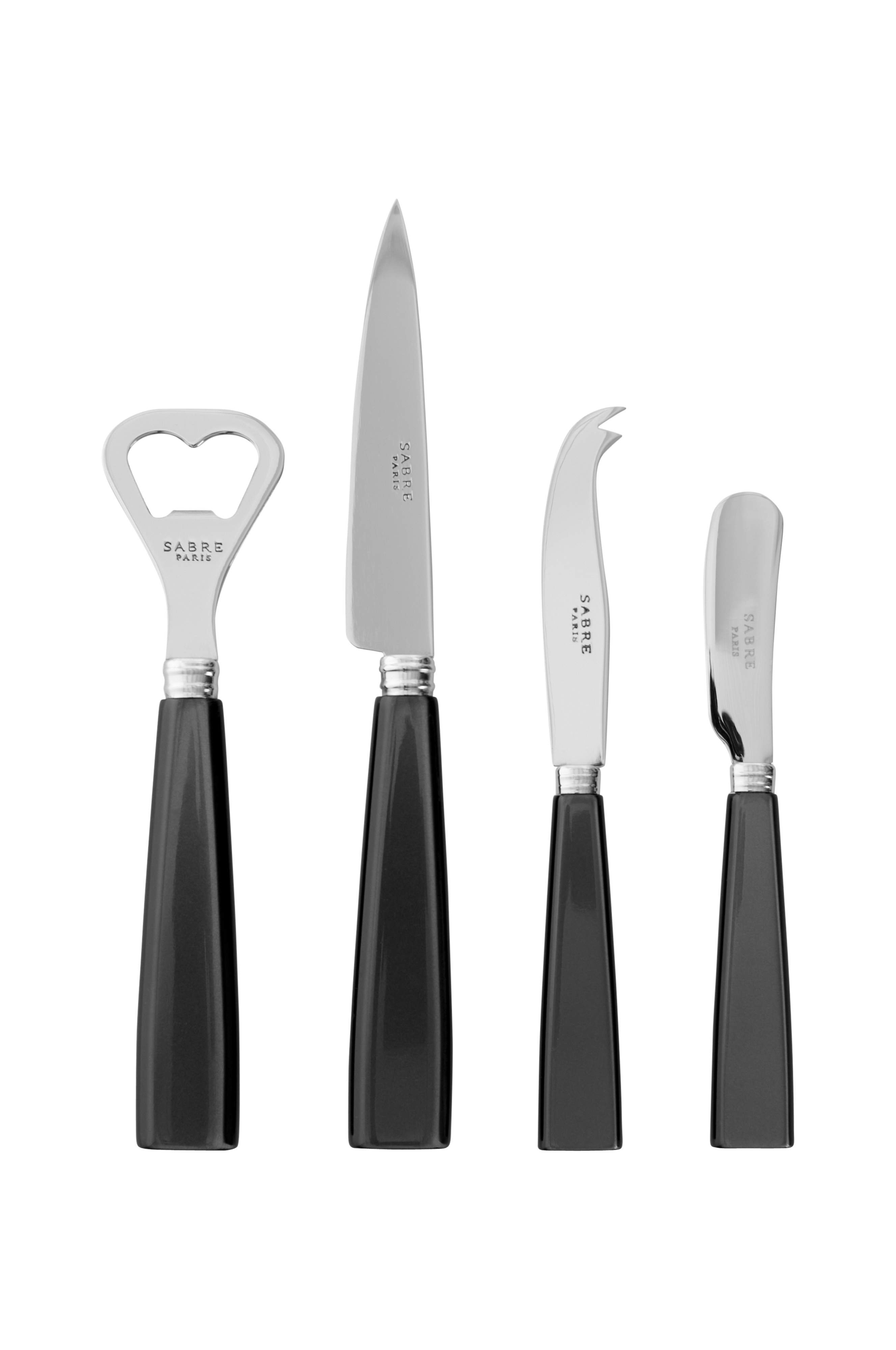 Sett til forrett i fire deler som inneholder en flaskeåpner, en kjøkkenkniv, en liten ostekniv og en smørkniv. En perfekt gaveidé!