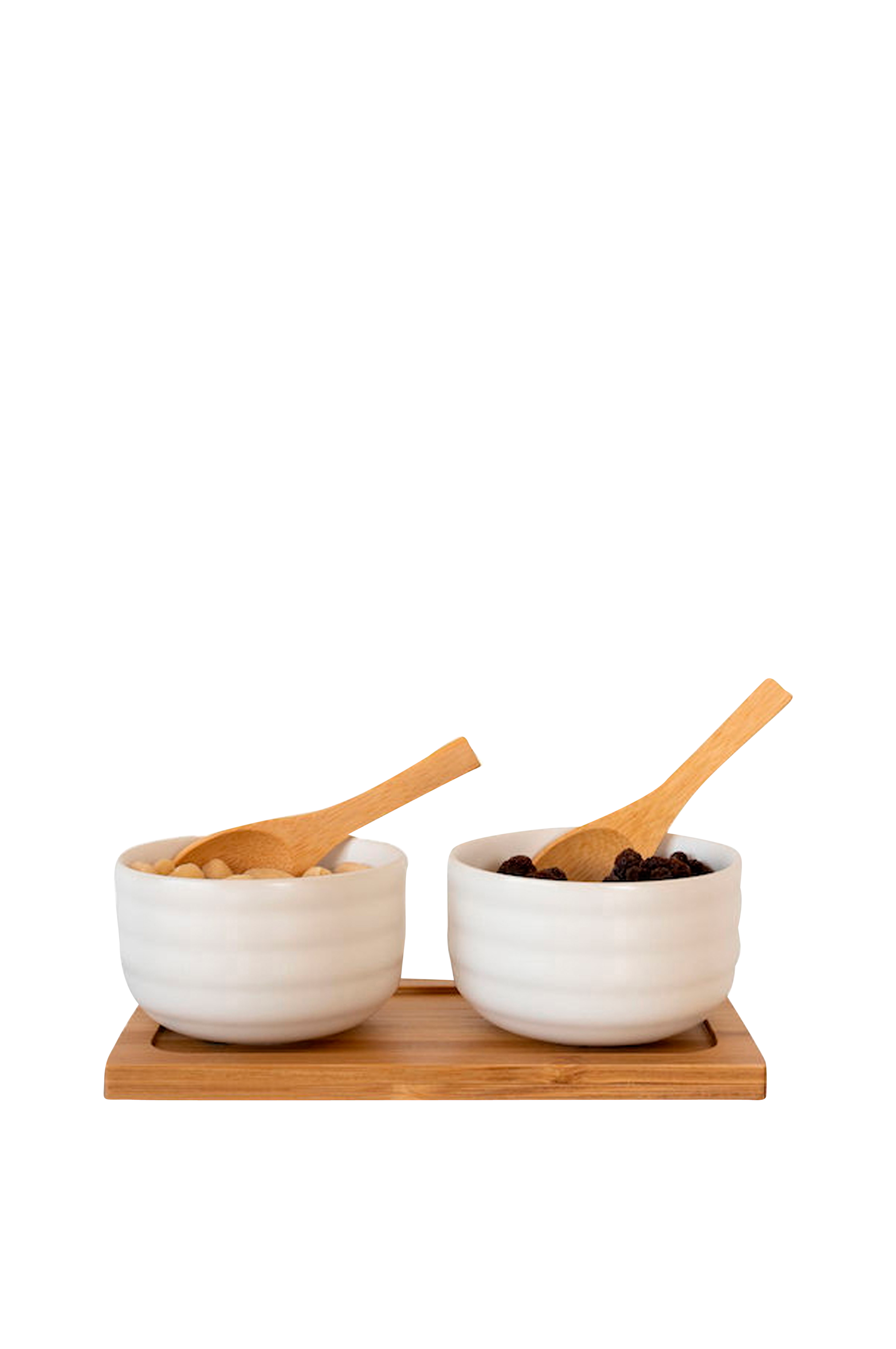 To små skåler produsert i steintøy, sammen med to skjeer og et fint lite brett i bambus. Perfekte for tilbehør til gløgg, men også til andre ting resten av året. Mål: 17,5x9x6 cm. Rommer 17 cl.