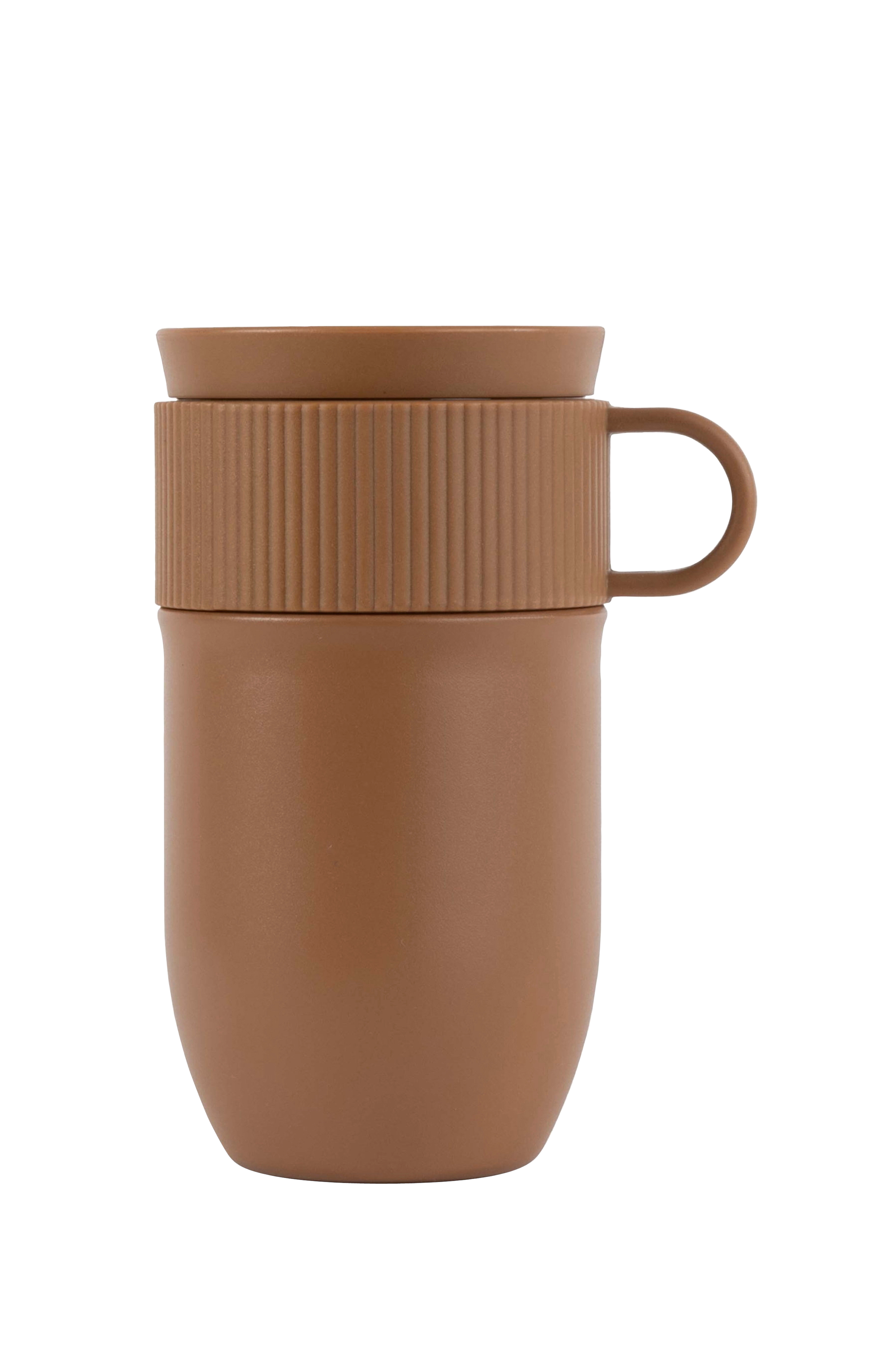 Ted reisekrus blir raskt en favoritt for deg som alltid vil ha en varm eller kald drikk for hånden. Designet i resirkulert rustfritt stål er lett å gripe om og har et praktisk håndtak samt en smart trykkfunksjon på lokket. Ted er stilren og mønstret med den karakteristiske Saga-stripen. Den dobbeltveggede, vakuumisolerte designen har et tynt kobberlag av høy kvalitet på utsiden av innerveggen, noe som gir bedre isolasjon og holder på temperaturen. Å drikke fra kruset 360 grader, som om det ikke hadde hatt lokk, gir en følelse av å drikke fra favorittkoppen din. Pulverlakkert. Tåler oppvaskmaskin. Rommer 28 cl. Design Studio Sagaform. Leveres i en klassisk Sagaform-eske.10,5x7,5x14cm 28cl