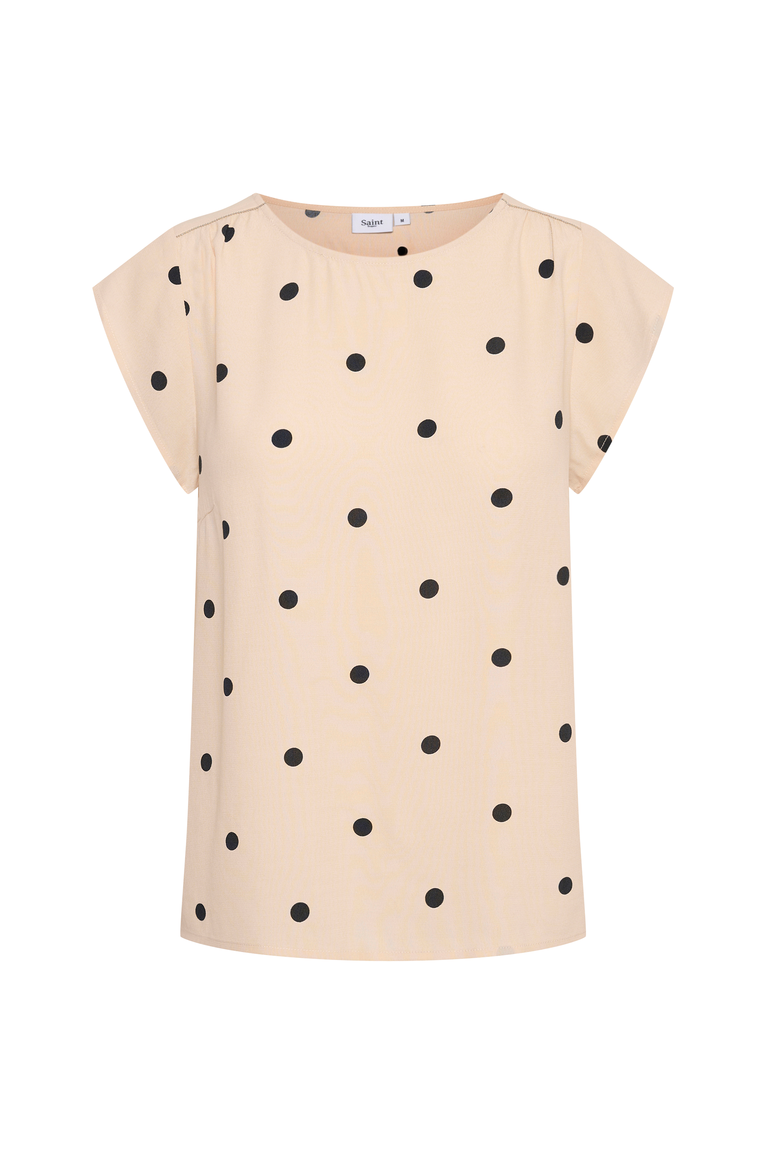 Bluse BlancaSZ Adele SS Top fra Saint Tropez med korte ermer og diskre sølvtråd på skuldrene. Ledig passform.