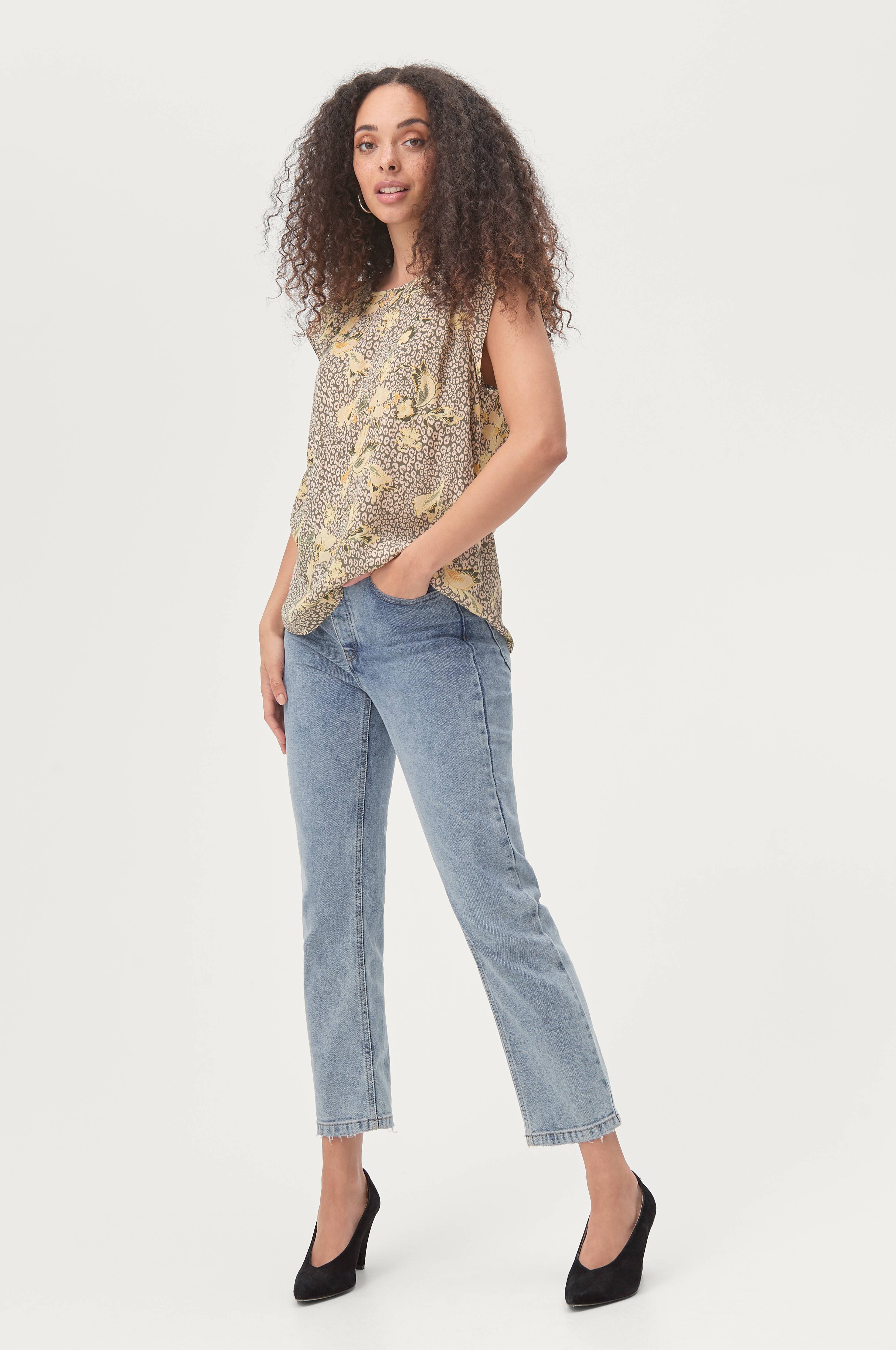 Bluse JennaSZ Adele Top fra Saint Tropez i mønstret, vevd kvalitet med korte ermer og rund halsringning.