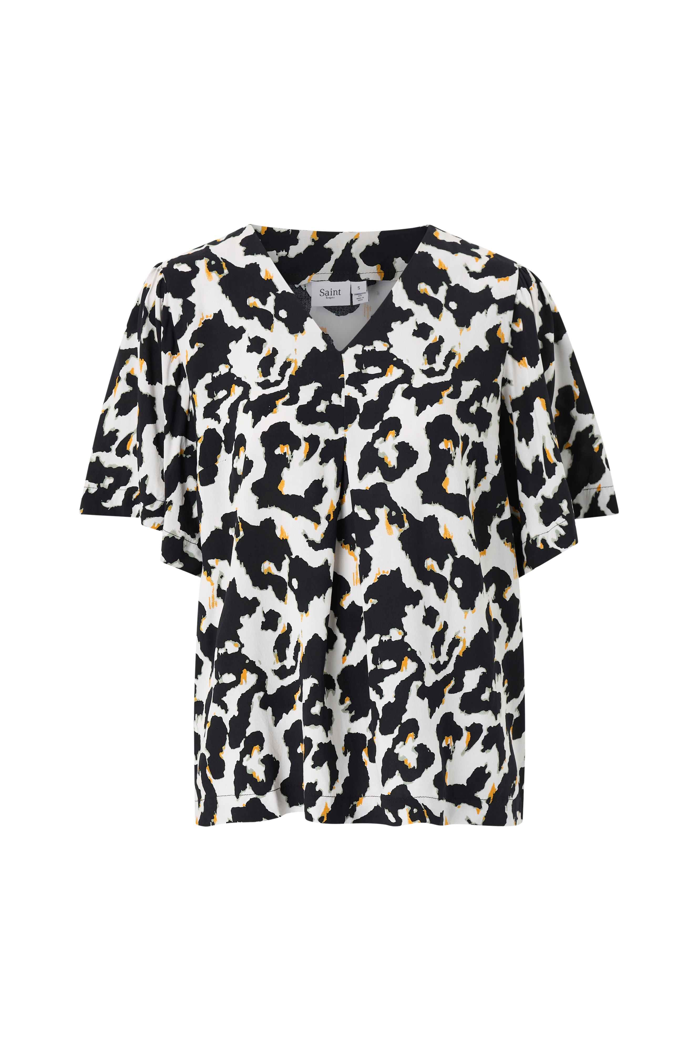 • Bluse med korte draperte volangermer• V-formet hals• Motfold foran