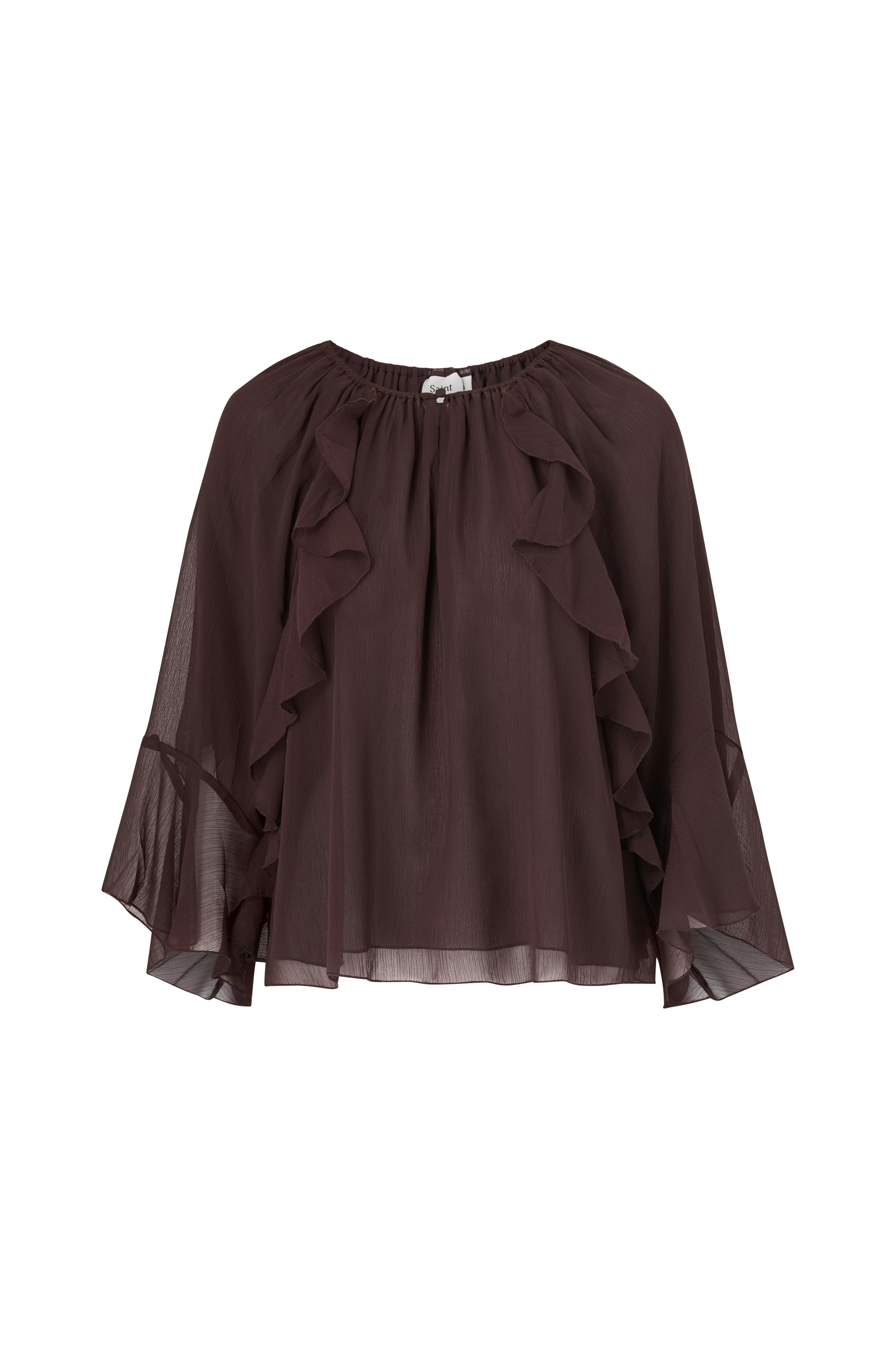 • Bluse i chiffon med volanger