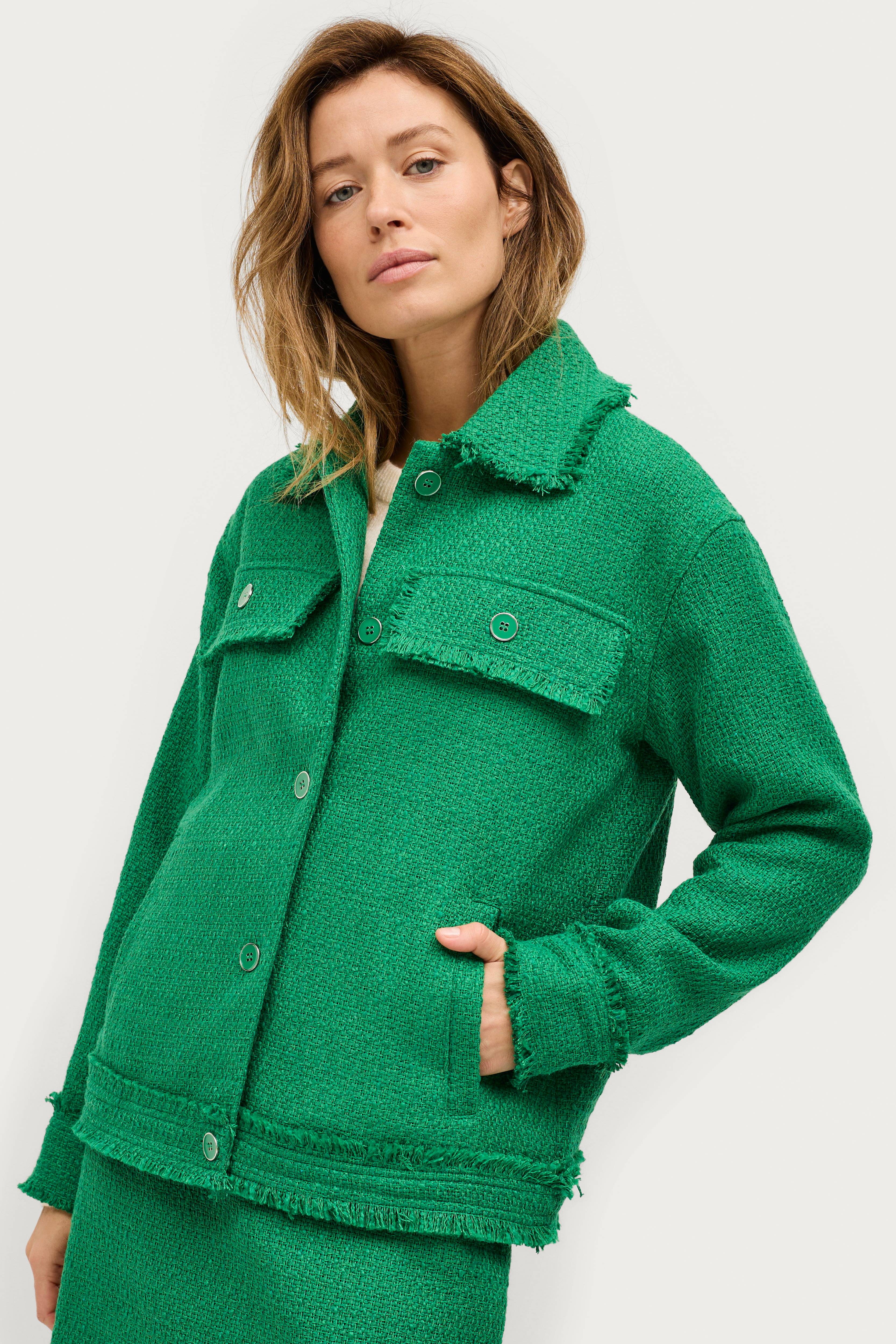 • Jakke i ullblanding• Løs passform• Stoff med struktur• Knappelukking• Frynsete kanter• Sidelommer• To brystlommer med knapp• Knapp i ermeslutten• Lengde: 64 cm i størrelse S