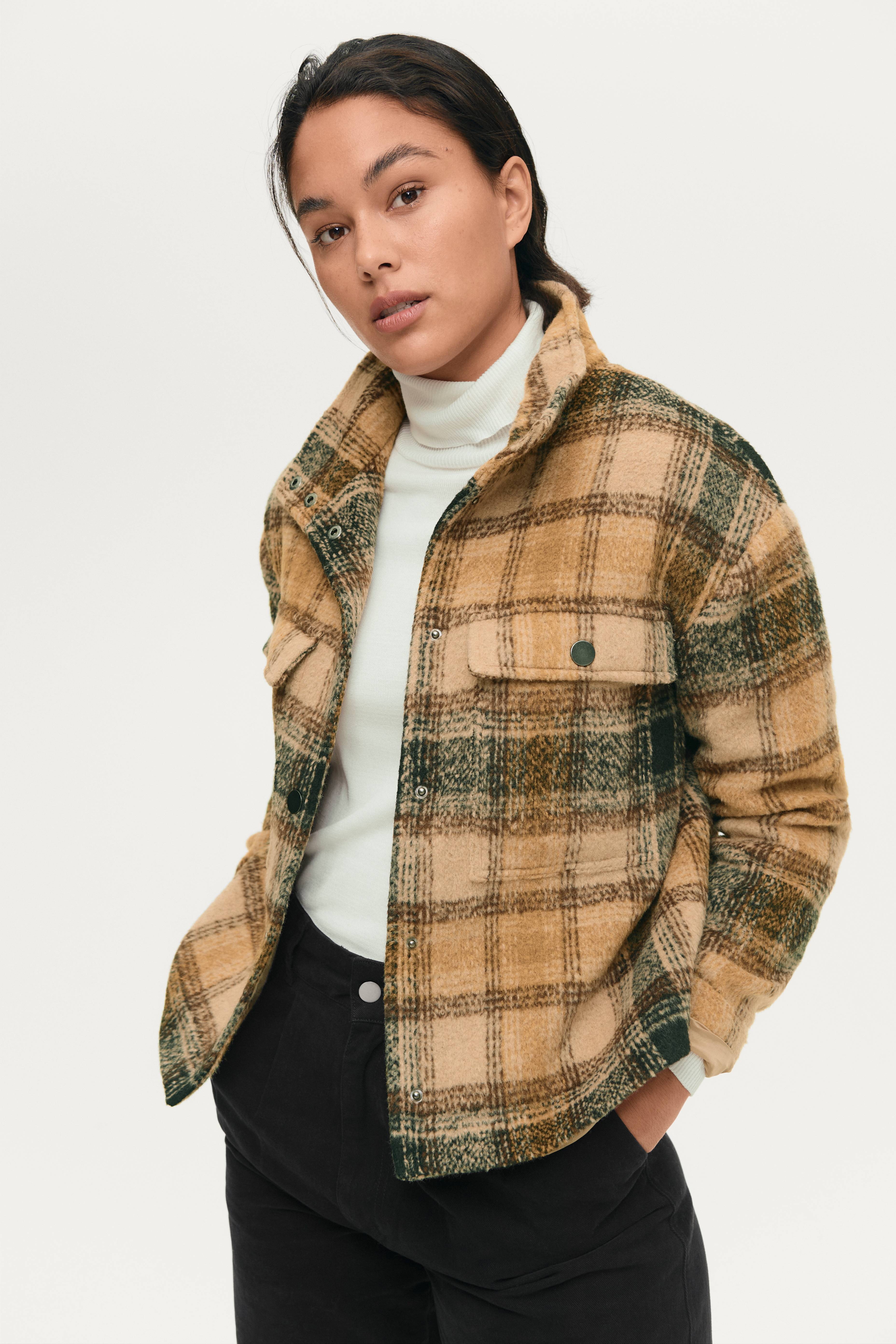 Jakke CassieSZ LS Jacket fra Saint Tropez med trykknapper foran, brystlommer med klaff og knapp og ståkrage med trykknapper. Oversize-passform med lave skuldersømmer. Fôret. Lengde ca. 60 cm i str S.