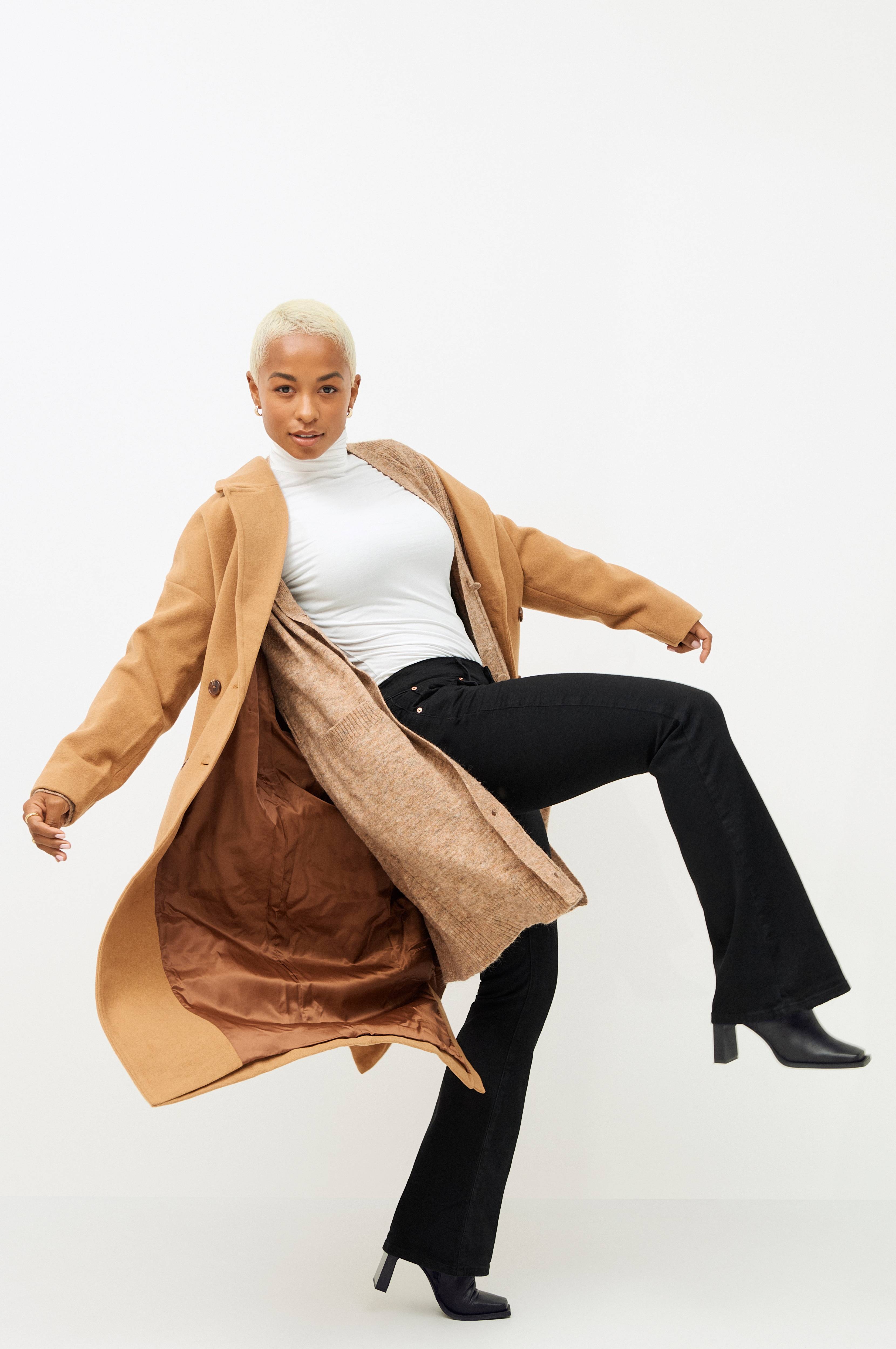 Flott farge og flott lengde for meg som er 167 cm, men veldig stor størrelse! Bestilte S, men fikk lov til å bli returnert.