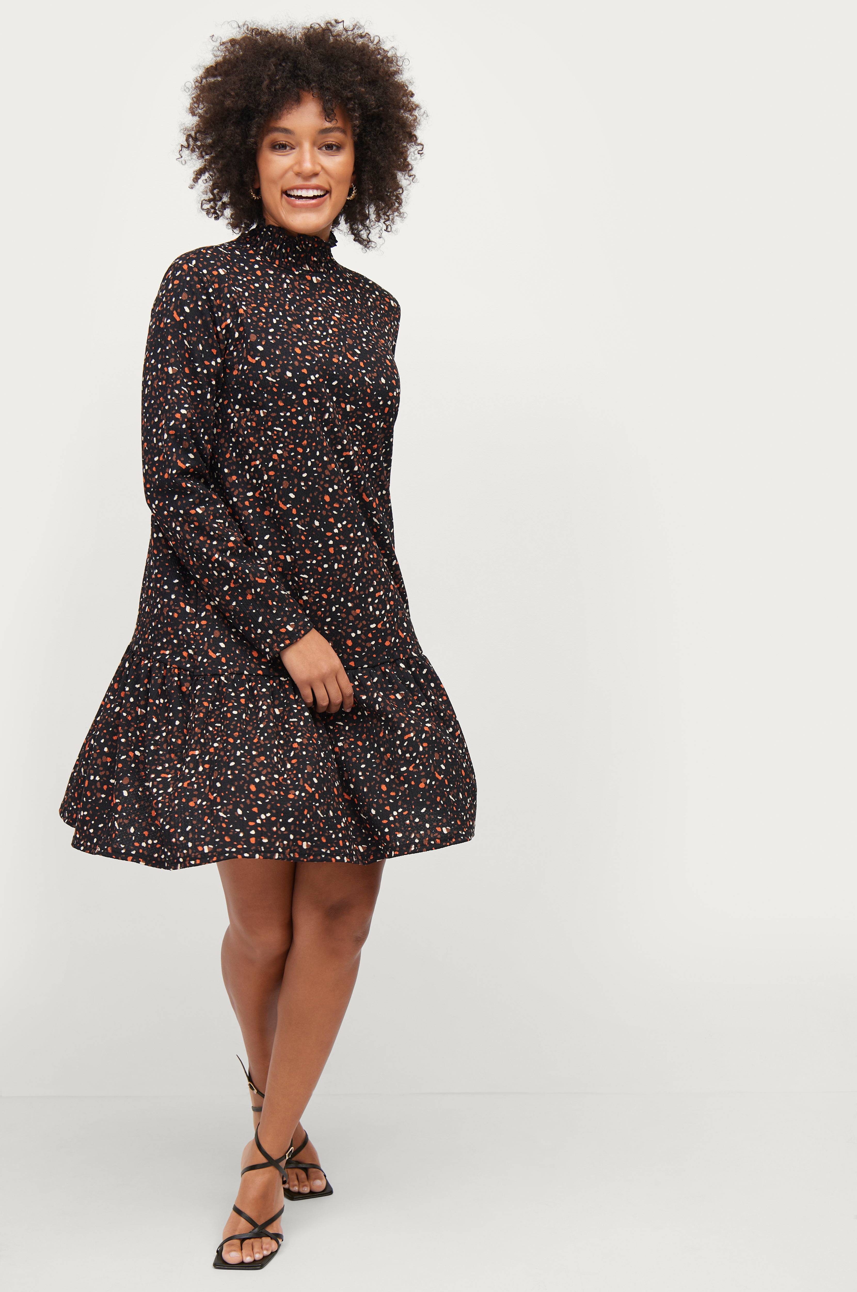 • A-linjeform• Ståkrage med volang• Volang på bunnen• Lengde: 96 cm i størrelse S