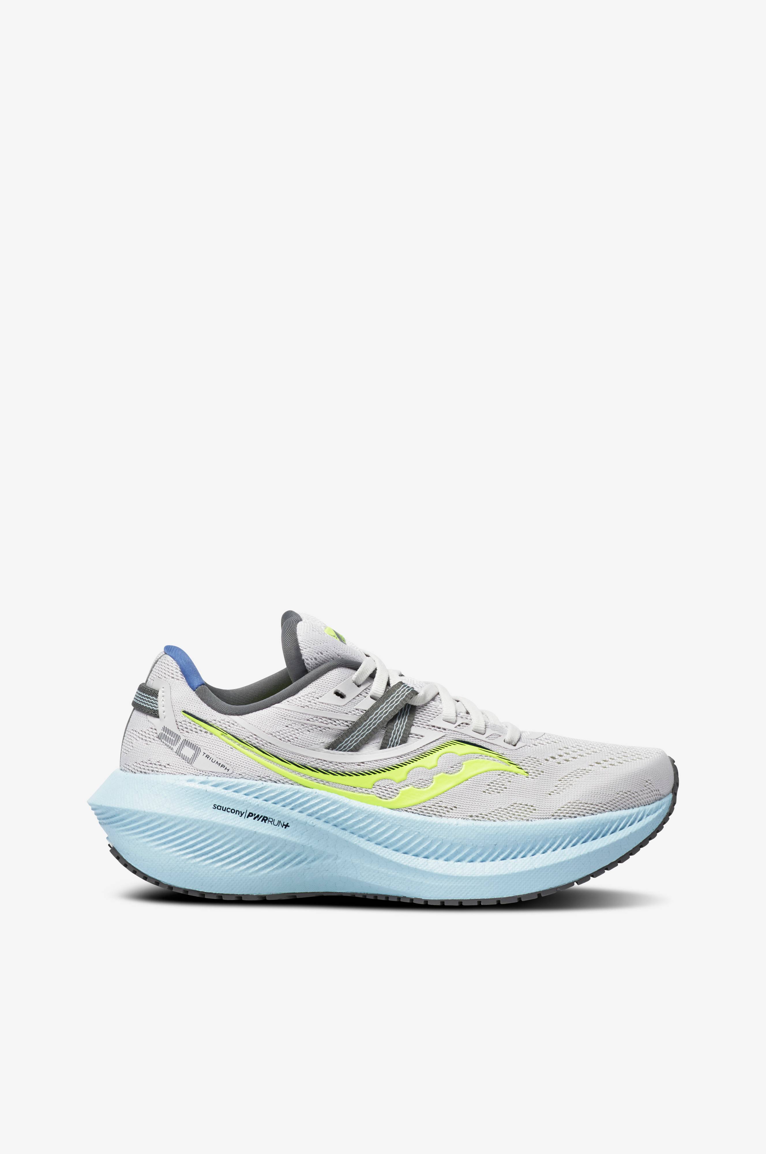 Hele mellom- og toppsålen består av PWRRUN+, Sauconys mest støtabsorberende materiale. Overdel i sømløs, ventilerende mesh. FORMFIT-konstruksjon gir optimal passform i hele skoen. Kombinasjonen av 10 mm drop, spenstig støtdemping og tydelig avfaset hældel på mellomsålen gir en myk og avlastende følelse, med redusert rotasjonskraft fra start til maks belastning. Dette reduserer mengden pronasjonspåvirkning for anklene. Slitesterk XT-900 yttersåle i gummi.