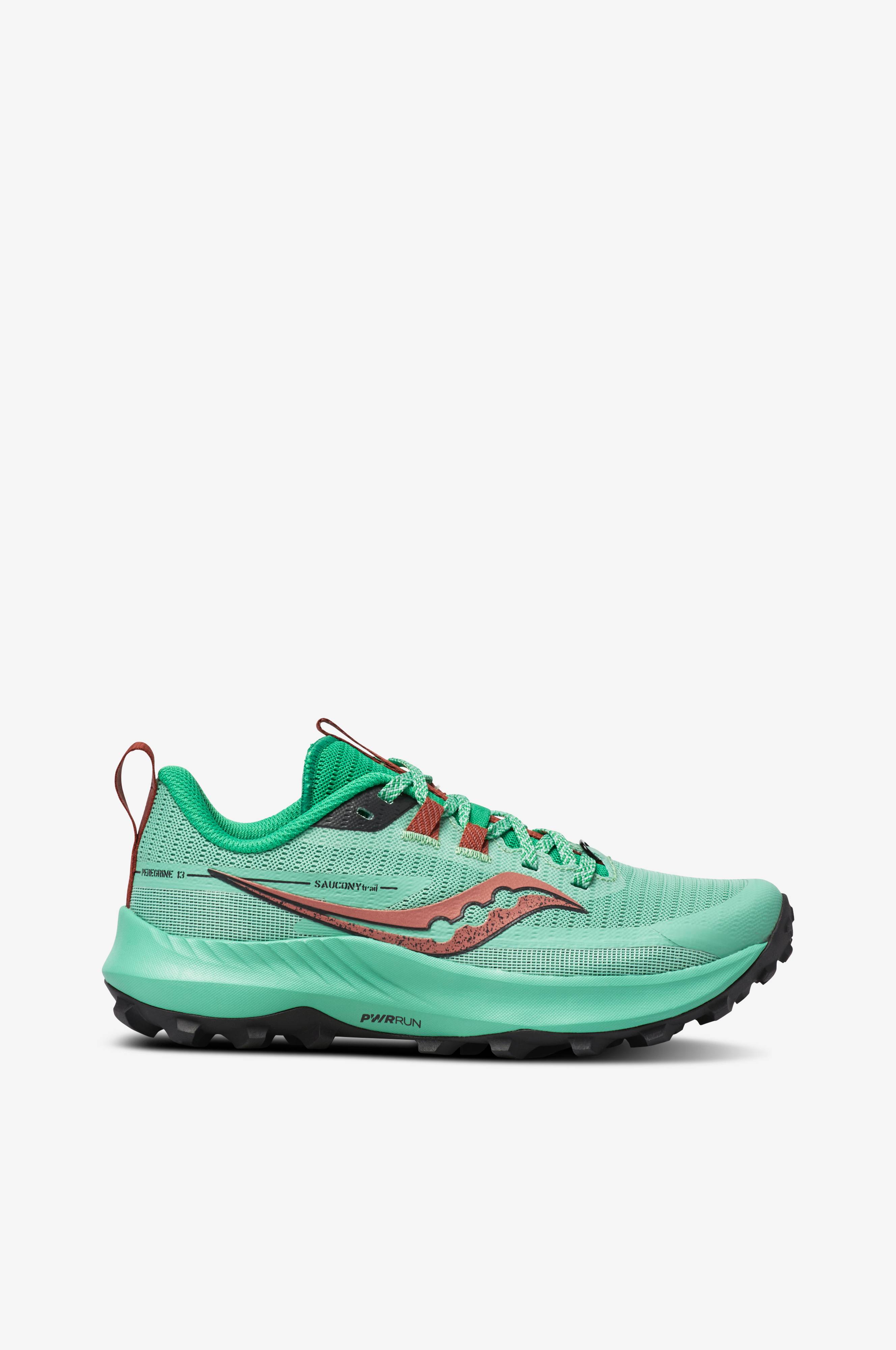 Peregrine 13 er oppdatert med mer demping enn noensinne, og er lettere og raskere enn tidligere versjoner. De perfekte skoene for variert underlag. Med mer PWRRUN i mellomsålen passer Peregrine 13 for løping på både grus og asfaltpartier. Innenfor yttersålen er det integrert Rock Plate-karbonfibervev, noe som fordeler trykket og beskytter foten mot skarpe steiner og røtter. Yttersålen har et 5 mm grovt mønster som gir utmerket bakkekontakt, grep og løpsfølelse uansett underlag.
