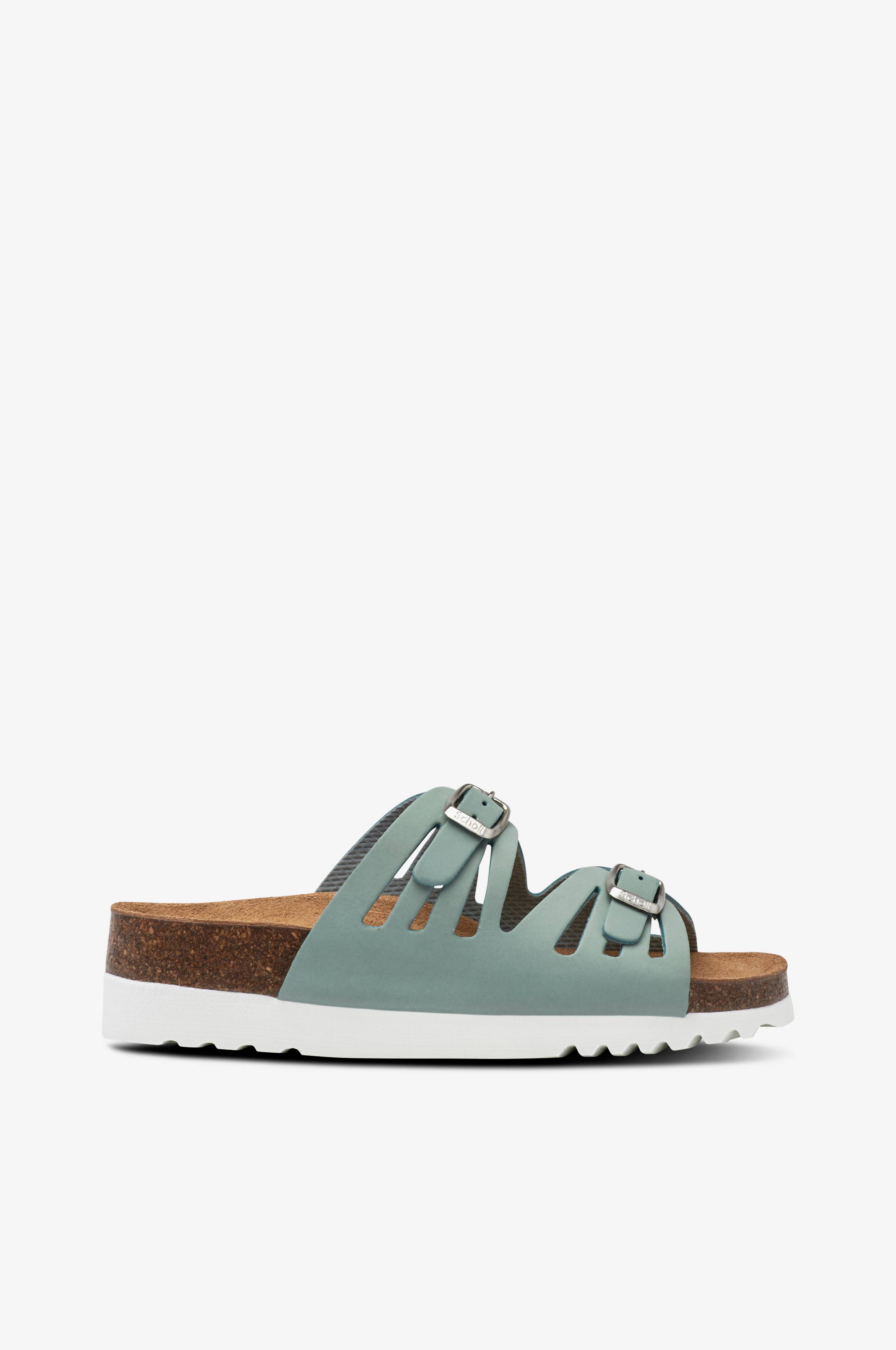 Lette og smidige sandaler med en anatomisk oppbygd Bioprint Adapt-såle med god støtte i fotbuen og ved tærne. Fotsengen er kledd i semsket skinn. Den tykke korksålen gir litt høyde som gir deilig avlastning for ryggen. Slitesålen i EVA er fylt med små luftbobler som gir god demping. Sålehøyde bak 4,5 cm.