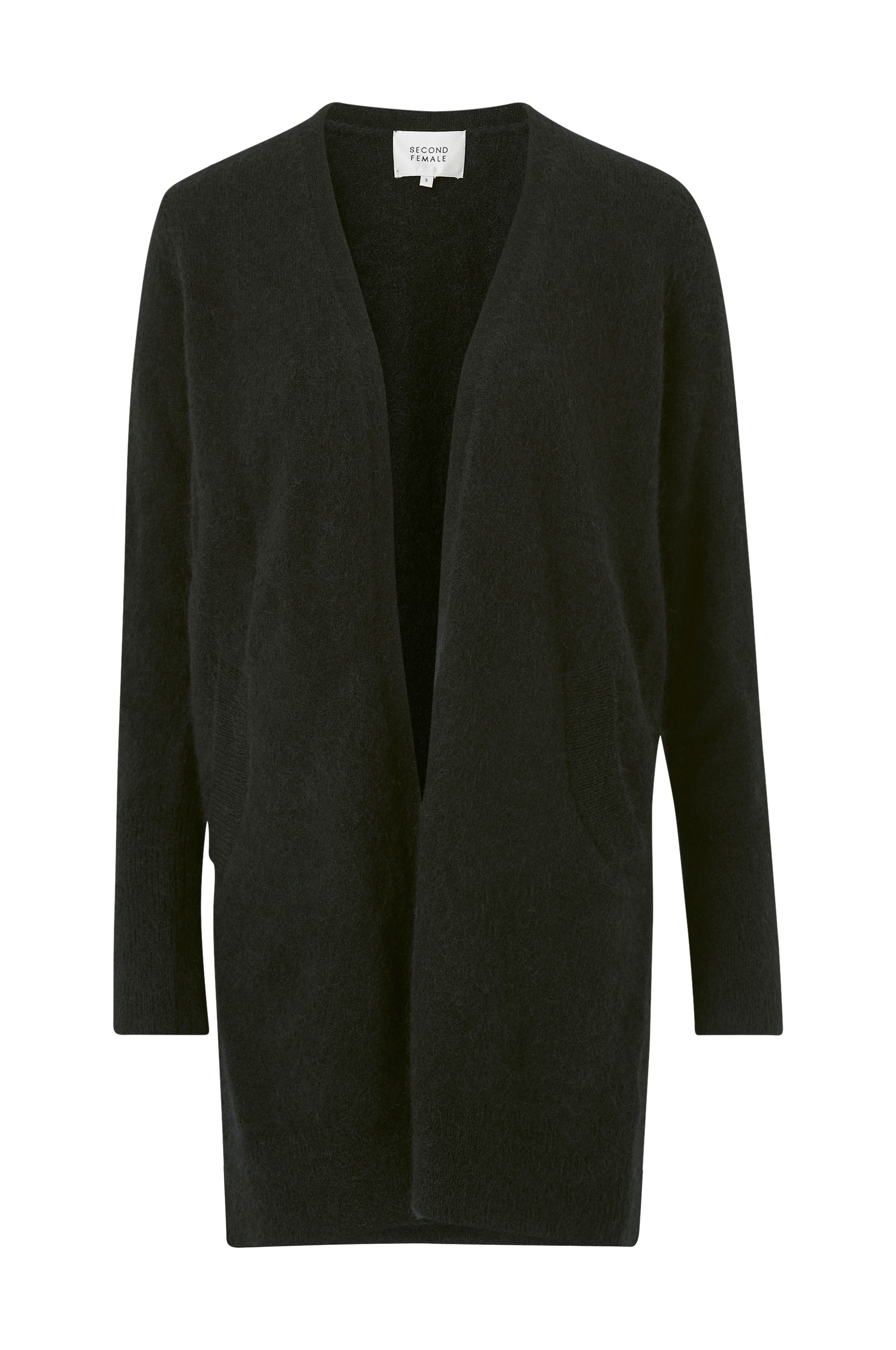 Cardigan Brook Knit New Pocket Cape fra Second Female. Lang, glattstrikket modell uten knapping og med to innfelte lommer som har ribbestrikket kant. Bred vrangbord i erme- og nederkant.