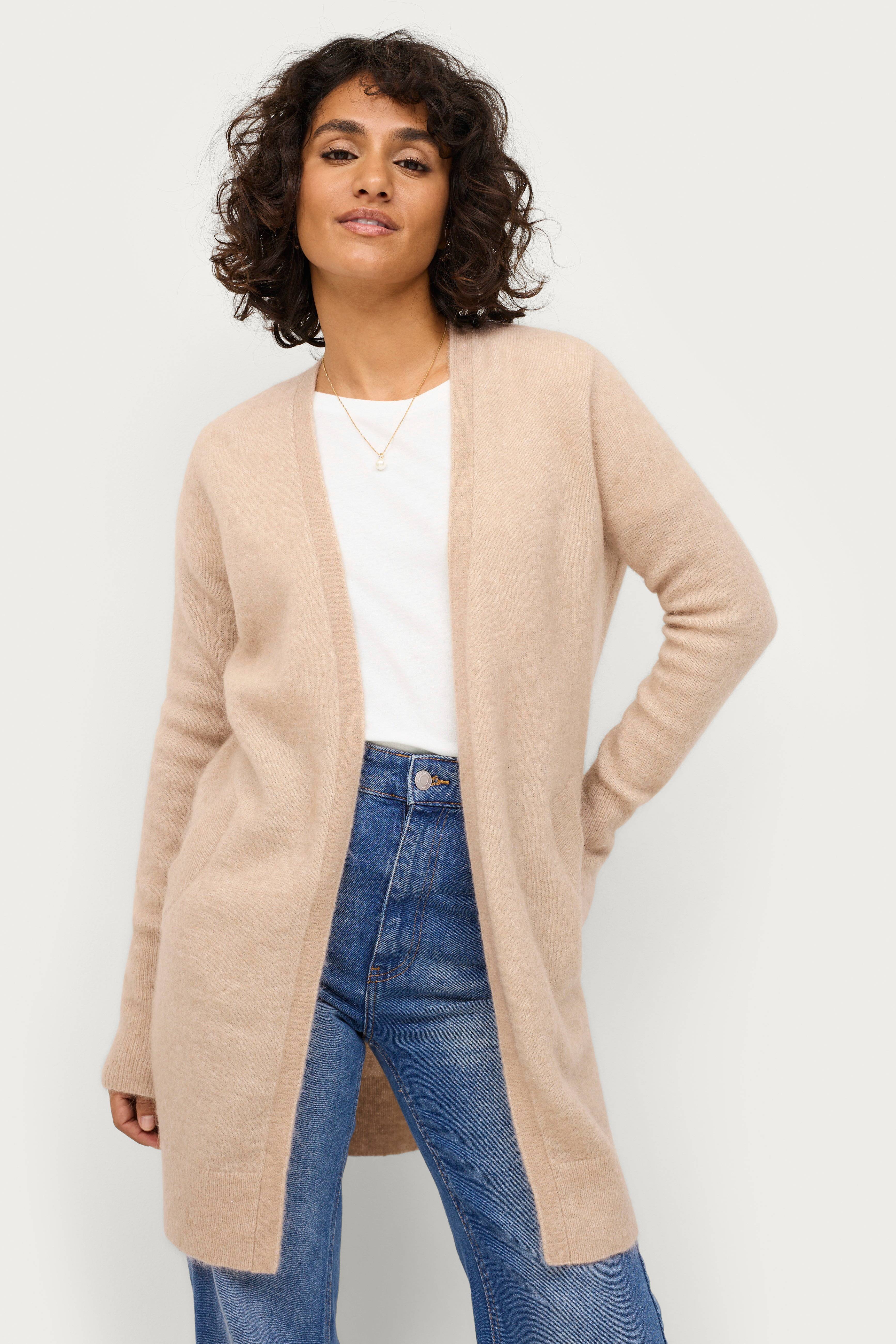 Cardigan Brook Knit New Pocket Cape fra Second Female. Lang, glattstrikket modell uten knapping og med to innfelte lommer som har ribbestrikket kant. Bred vrangbord i erme- og nederkant.