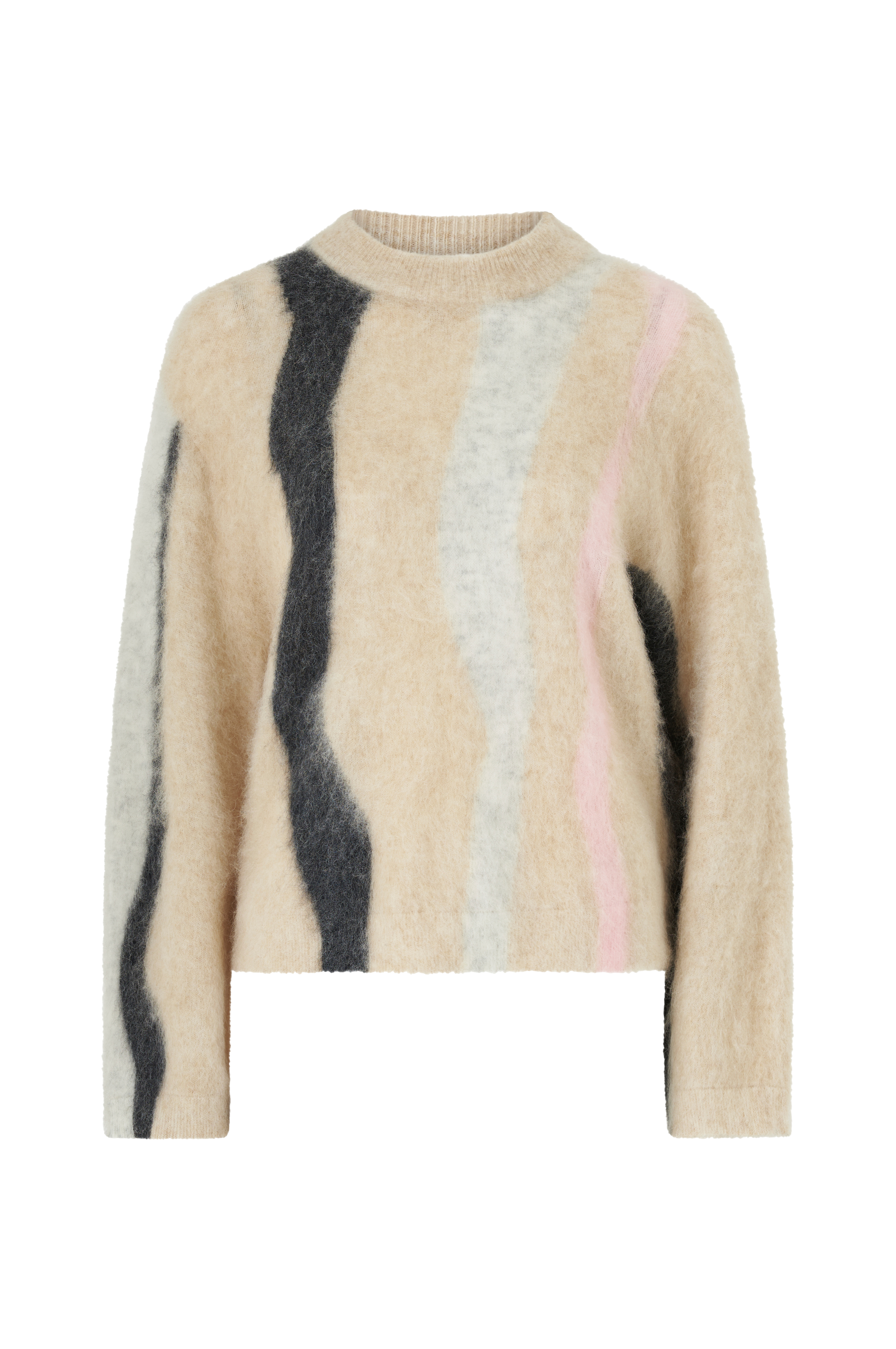 • Modell i ullmiks• Hals med ribbet kant• Langt erme• Ribbestrikk i nedre kant og i ermeslutten