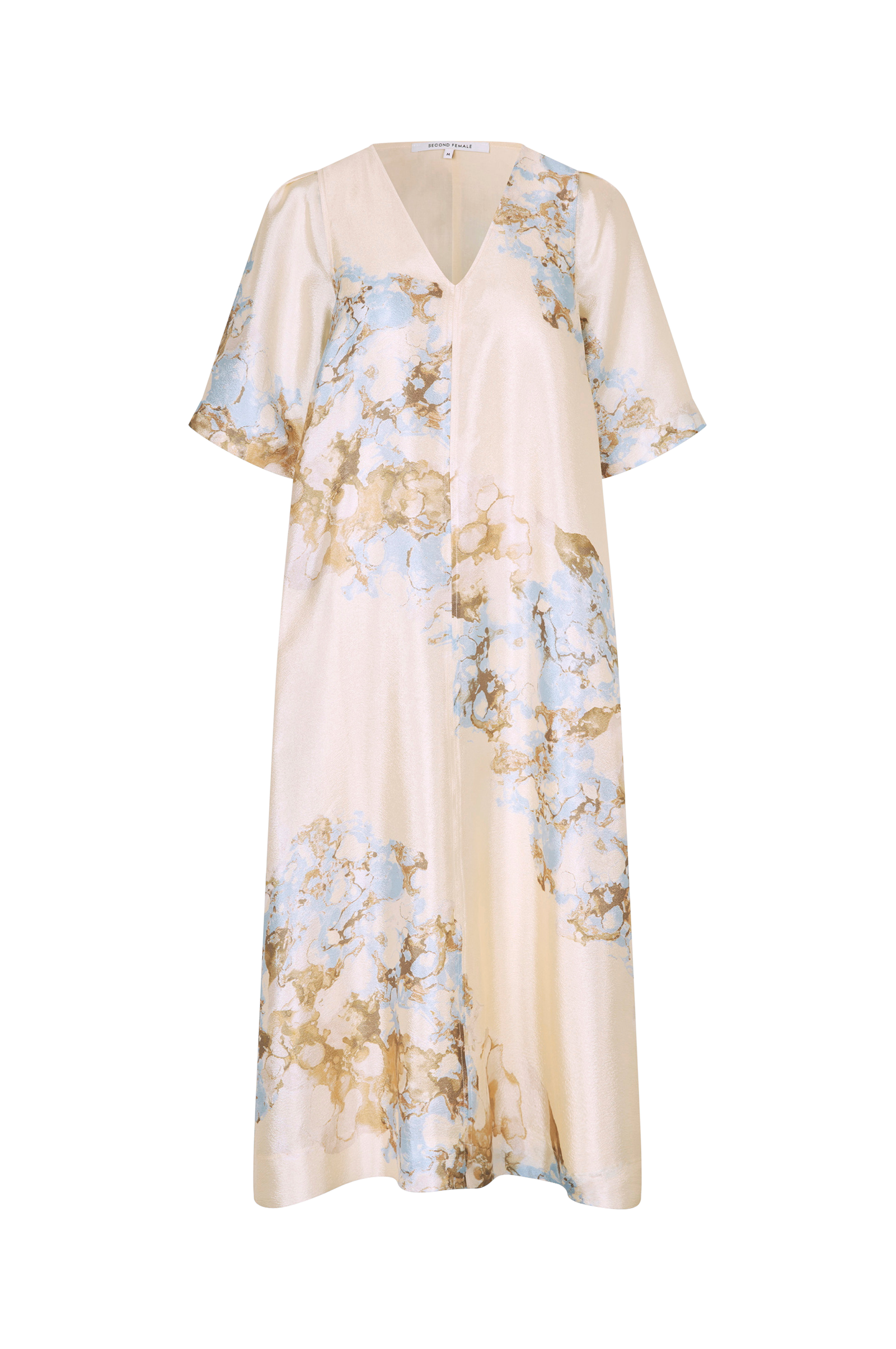 • Utsvingt modell i sateng med lysskinn• V-formet hals• Kort bobleerme• Langsgående søm midt foran og midt bak• Innfelte sidelommer• Fôret• Lengde: 122 cm i størrelse S