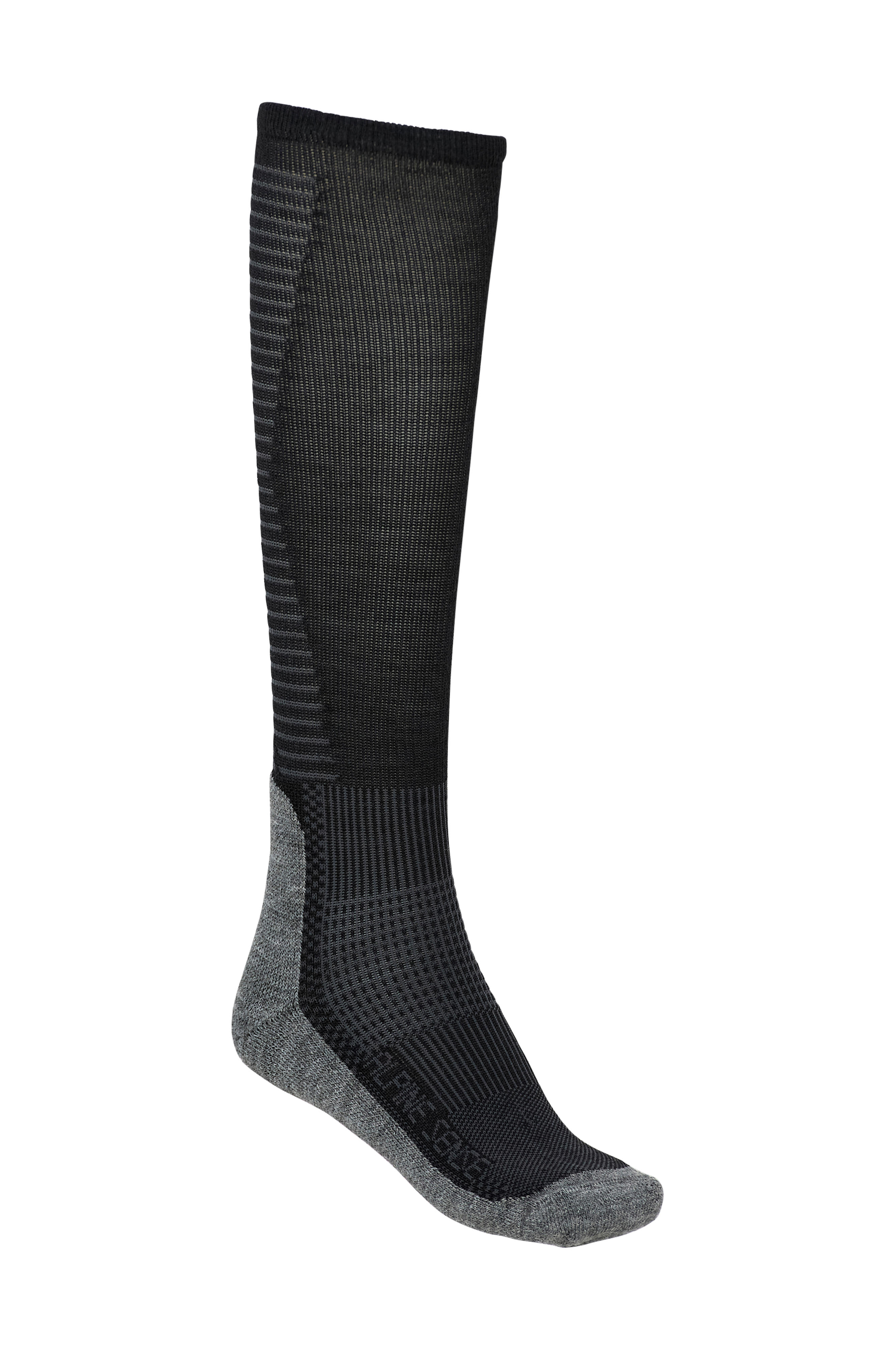 Alpinstrømper i ullblanding med frotté under foten for ekstra komfort og ekstra varme. Strikk rundt fotbuen og vristen for å sitte godt på plass. Tekstur- og ribbestrikket overside/skaft for fukttransport. Gradert kompresjon, noe som øker blodsirkulasjonen. Passer den som har litt tettsittende støvler og/eller ønsker mye følelse i kjøringen.