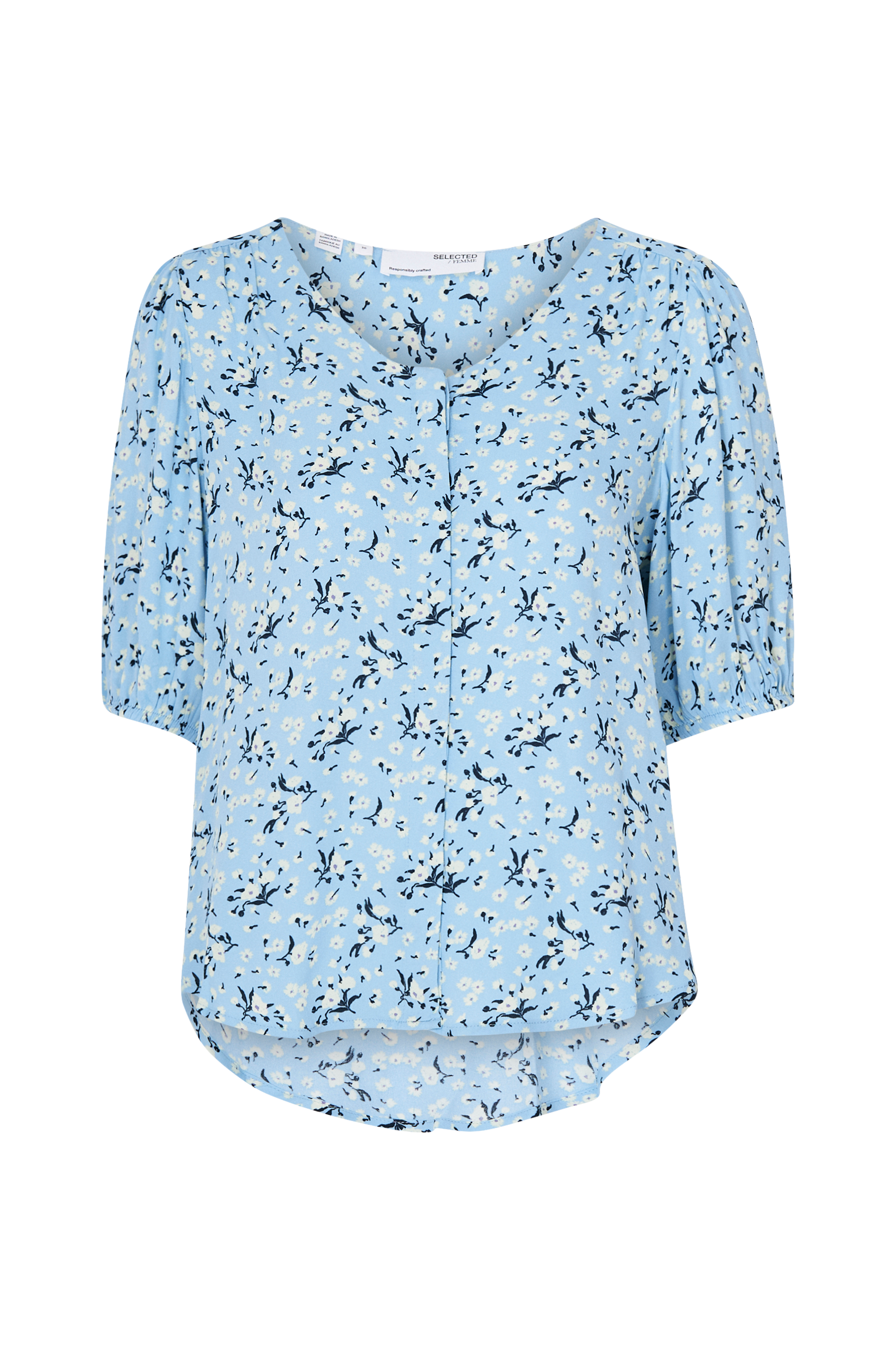 • V-formet hals• Skjult knappstolpe• Korte armer med elastisk strikk i ermeslutten• Avrundet hem
