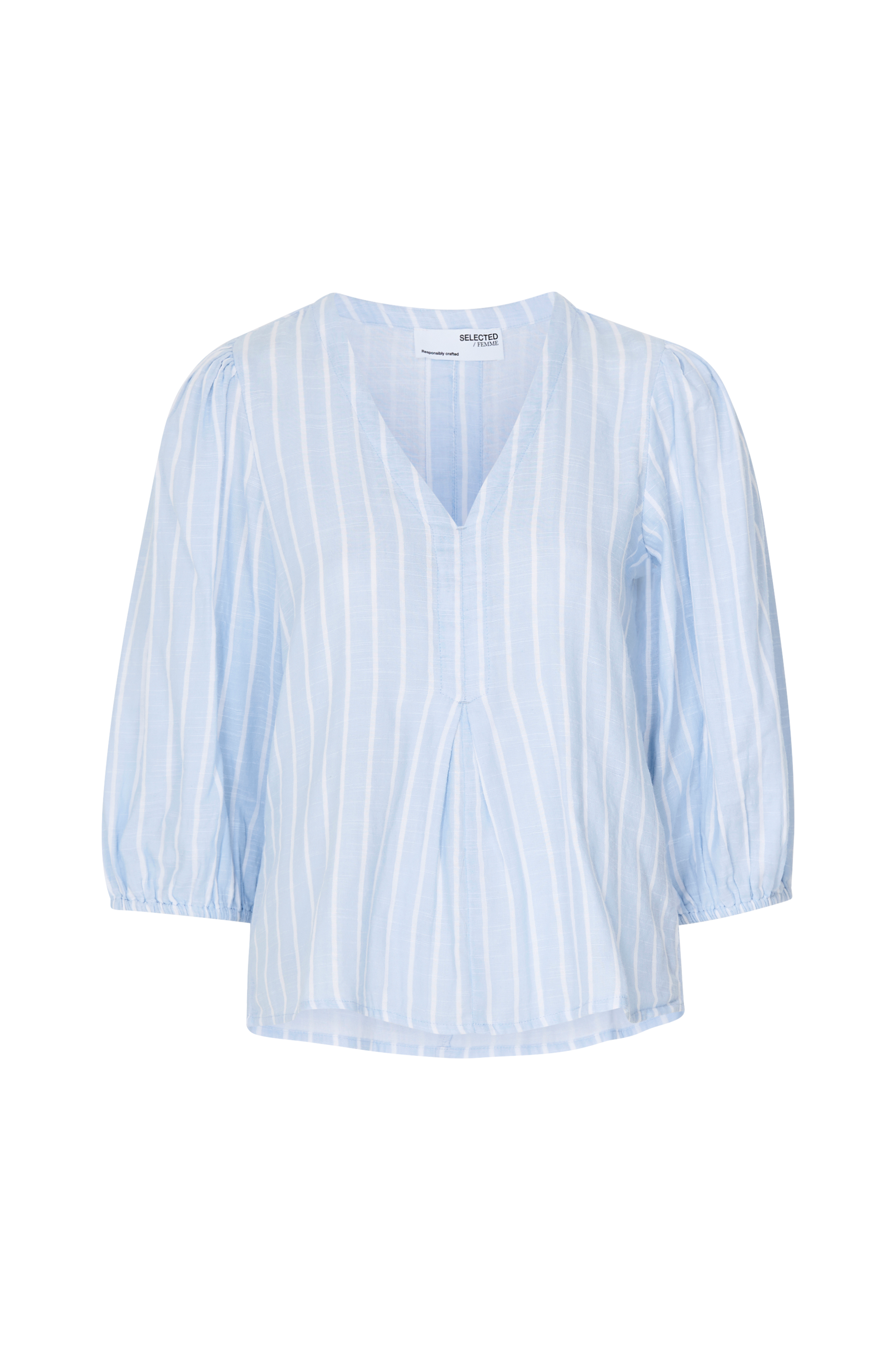 • V-hals snitt • Fold foran og bakpå • Ballongermer 3/4 lang med elastiske mansjetter • Produktet inneholder økologisk bomull som er dyrket uten kjemiske sprøytemidler, kunstgjødsel og genmodifiserte avlinger (GMO). Det innebærer et sunnere arbeidsmiljø for bønder og et bedre jordsmonn.