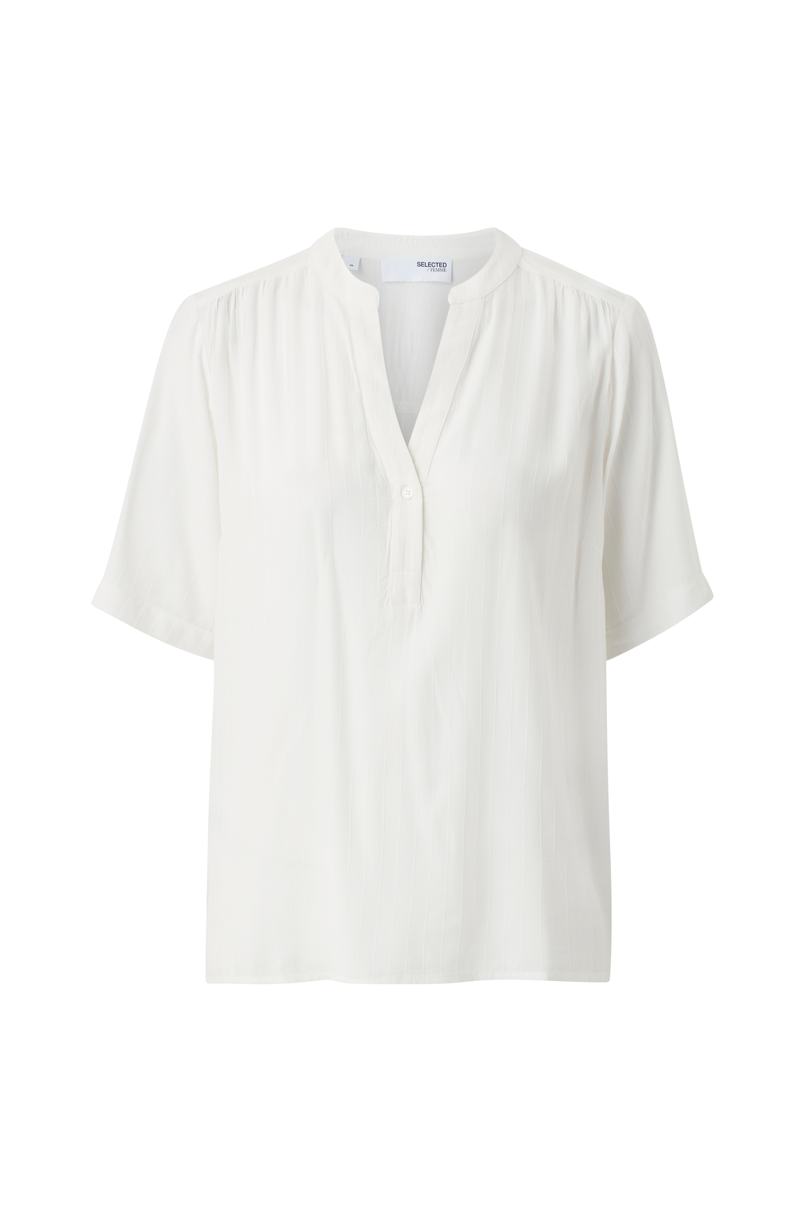 • Bred, rett modell• Hals med v-hals snitt og kort frontknepping• Rysje på skuldrene• Kort erme
