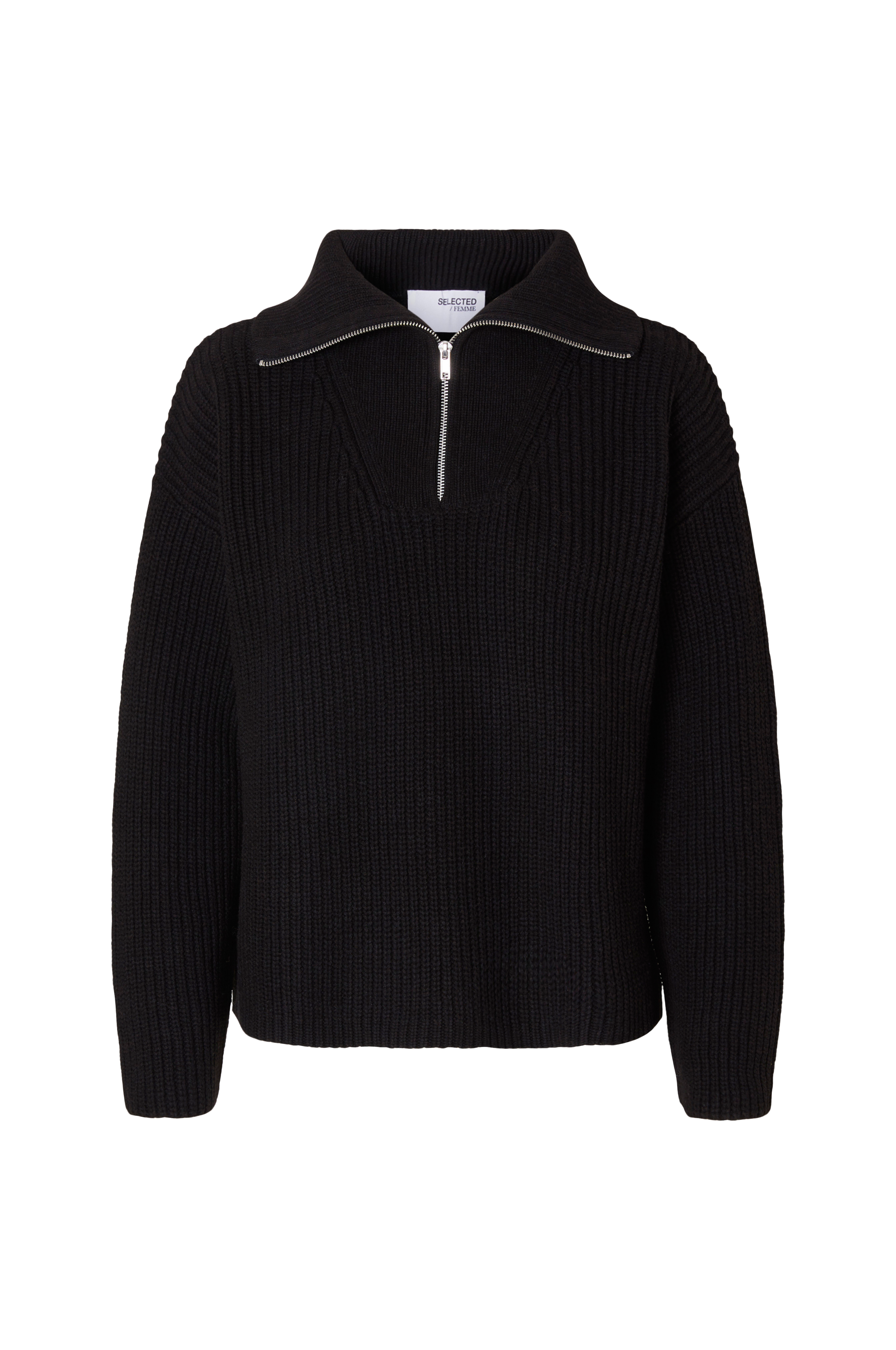 • Rett, ribbestrikket modell• Høy krage med glidelås• Langt, rett erme