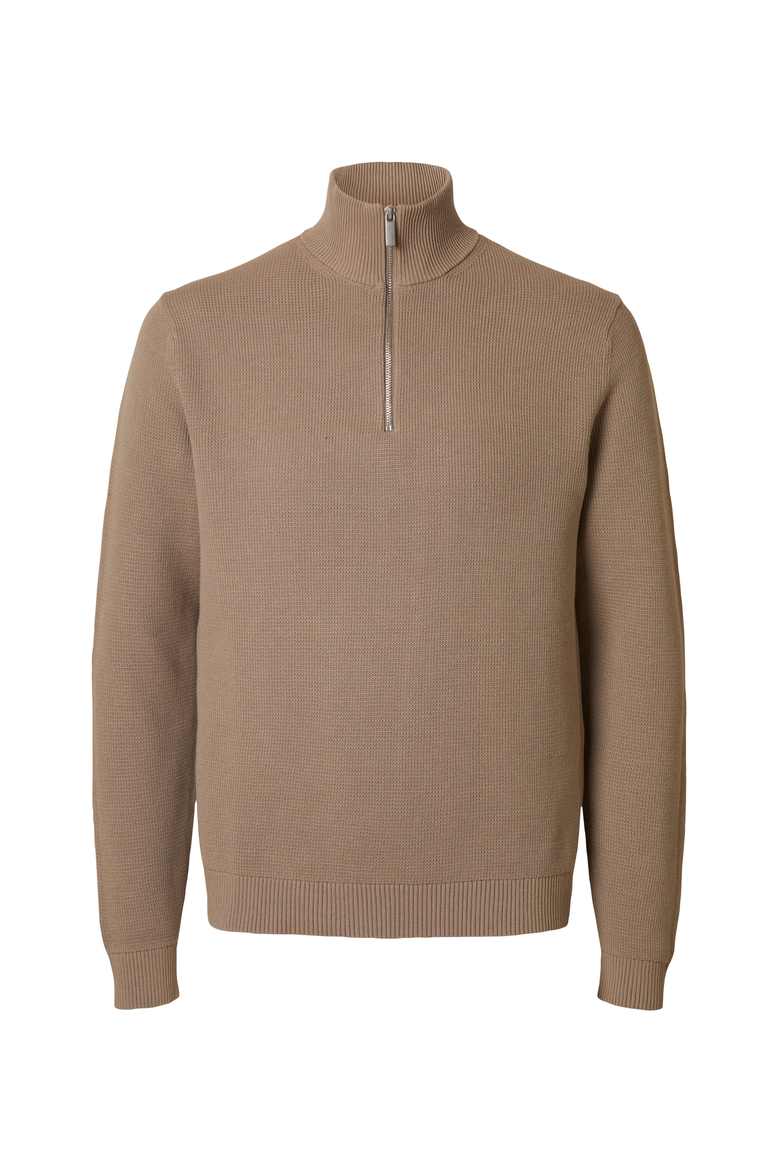 • Strukturstrikket genser• Høy, ribbestrikket, rund krage• Kort glidelås• Ribbet mansjetter i ermeslutten og på bunnen