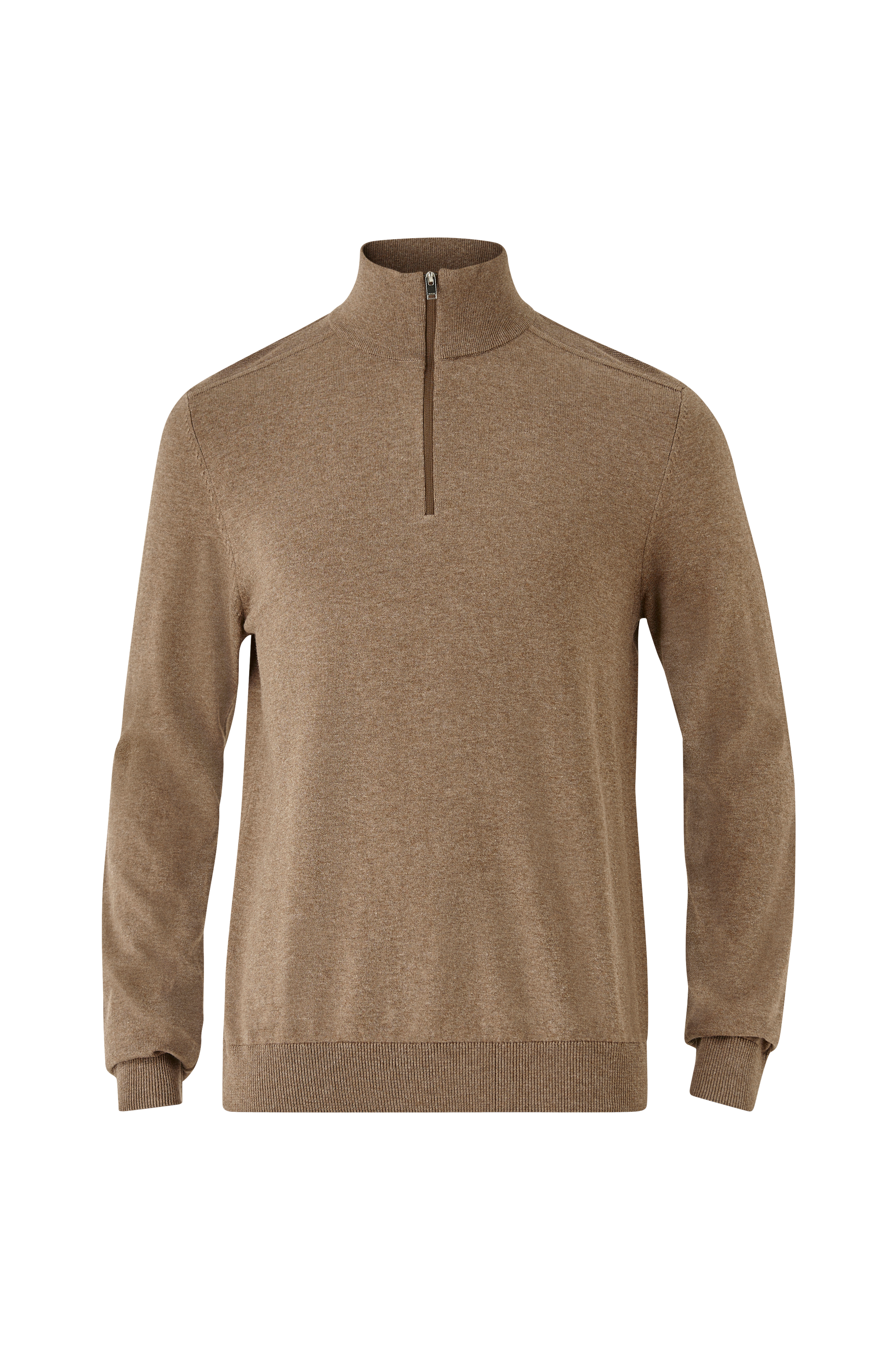 Pologenser slhBerg Half Zip Cardigan fra Selected Hommes. Finstrikket modell med høy, ribbestrikket krage som har kort glidelås foran. Strukturstrikk på skuldrene og vrangbord i erme- og nederkant.