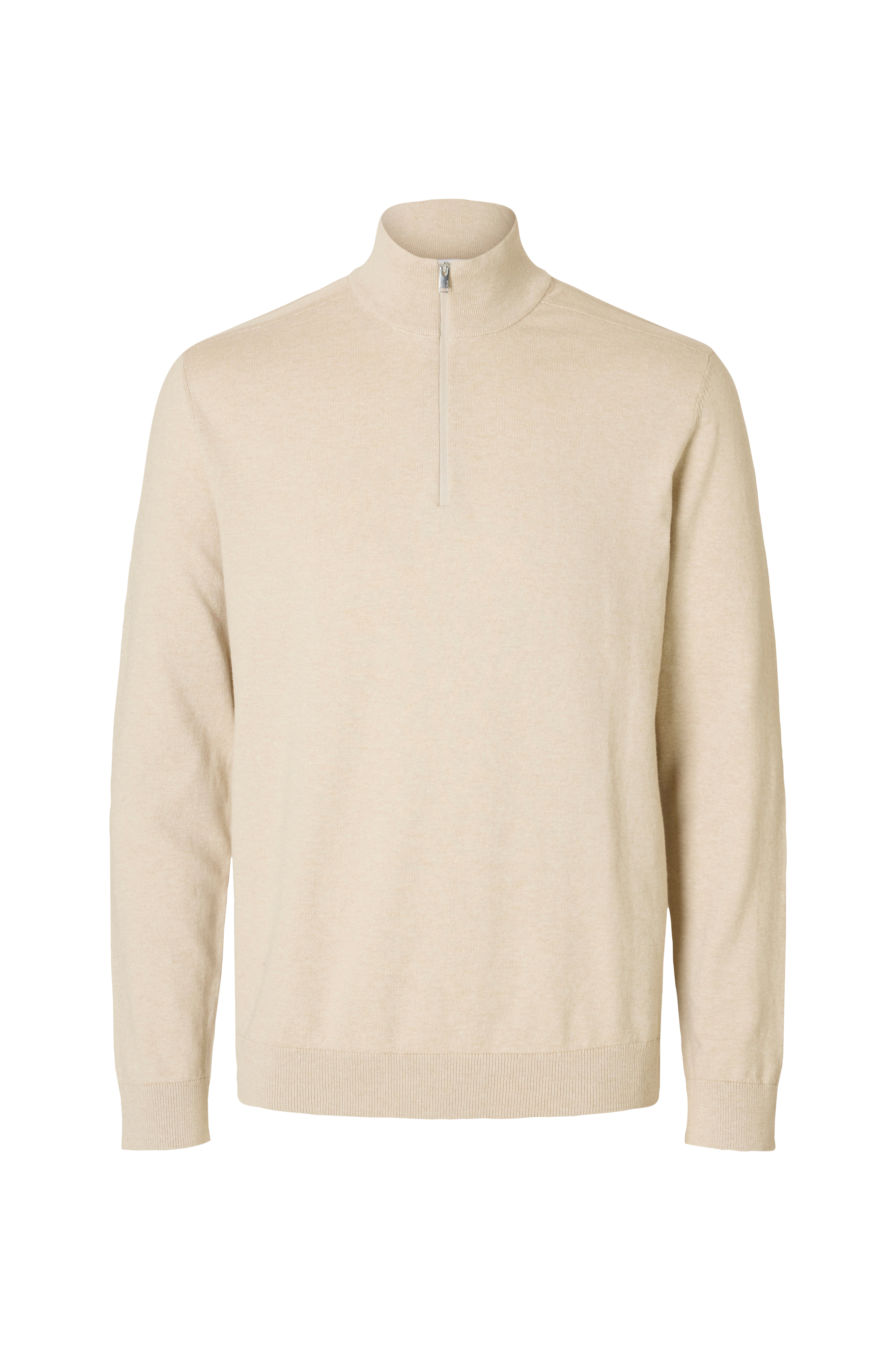 Pologenser slhBerg Half Zip Cardigan fra Selected Hommes. Finstrikket modell med høy, ribbestrikket krage som har kort glidelås foran. Strukturstrikk på skuldrene og vrangbord i erme- og nederkant.