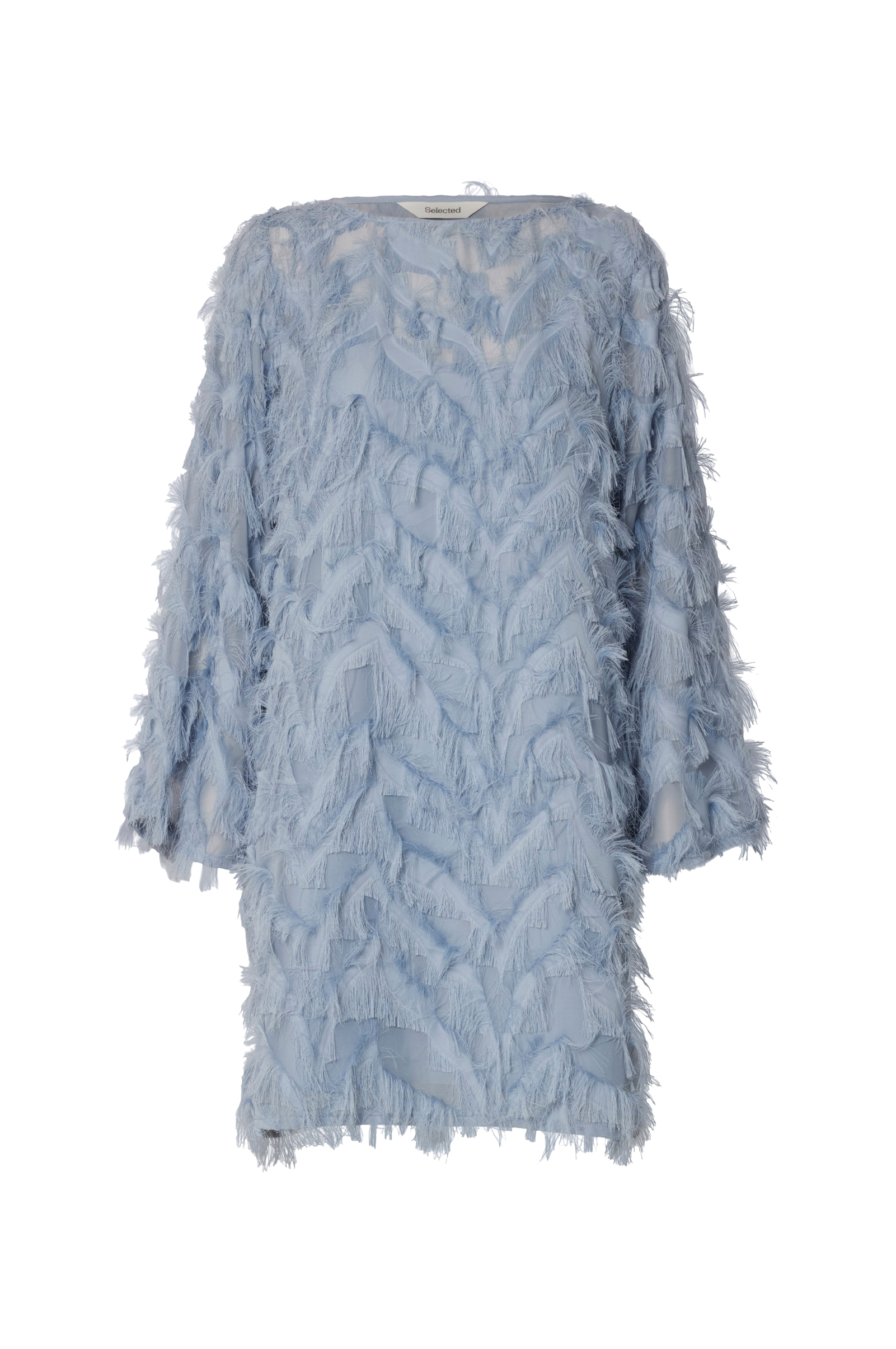 • Kjole med dekorative frynser• Båtutringning• Lange ermer• Uttagbart underskjørt• Lengde: 91 cm i størrelse 36