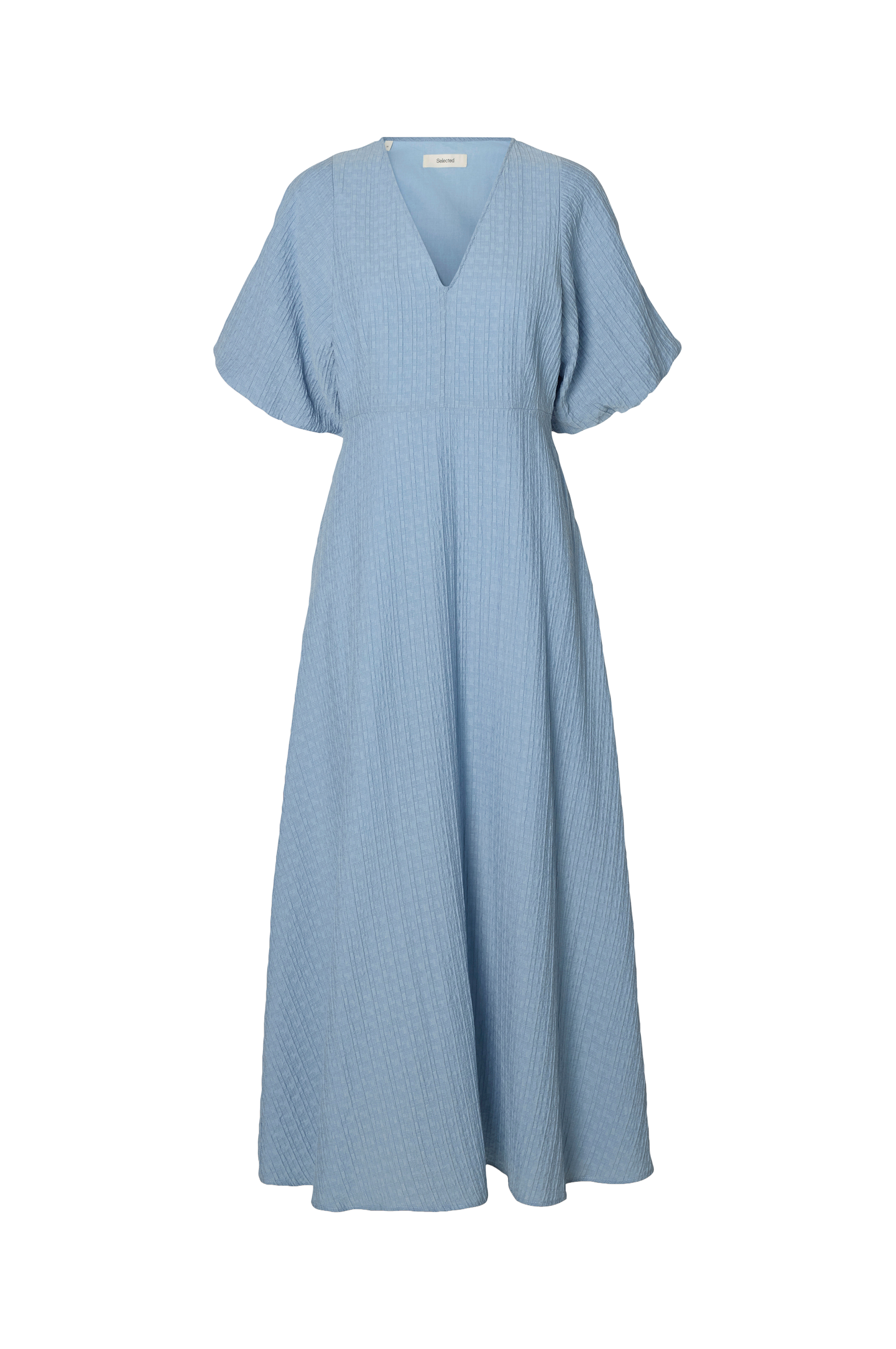• Lang, mønstret kjole• V-hals• Halvlange ballongermer• Skjult glidelås i ene siden• Tekstilfôr• Lengde: 138 cm i størrelse 36