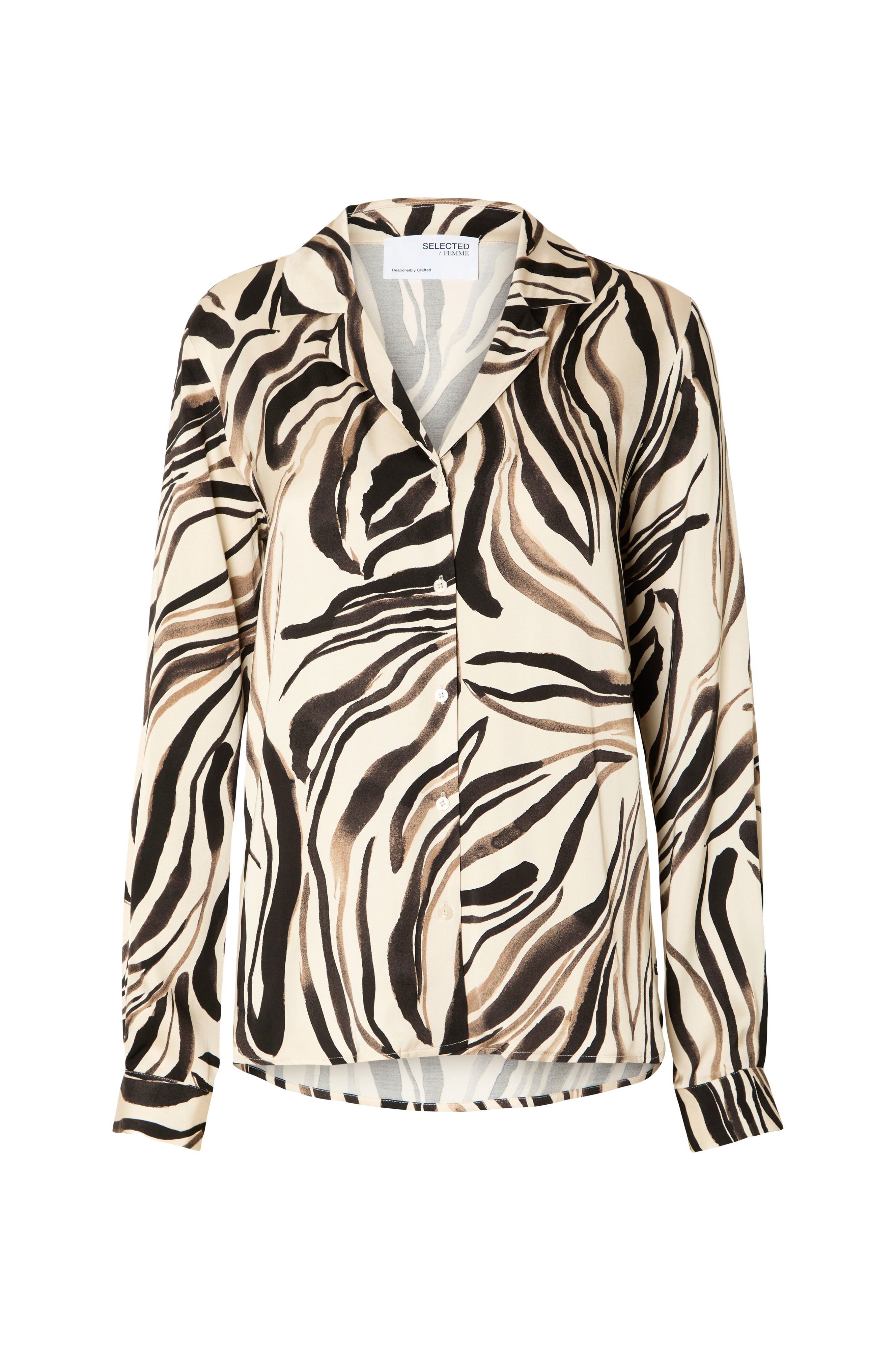 • Mønstret skjorte i sateng• Krage med jakkeslag• Knapper• Ventilasjon nede i sidene