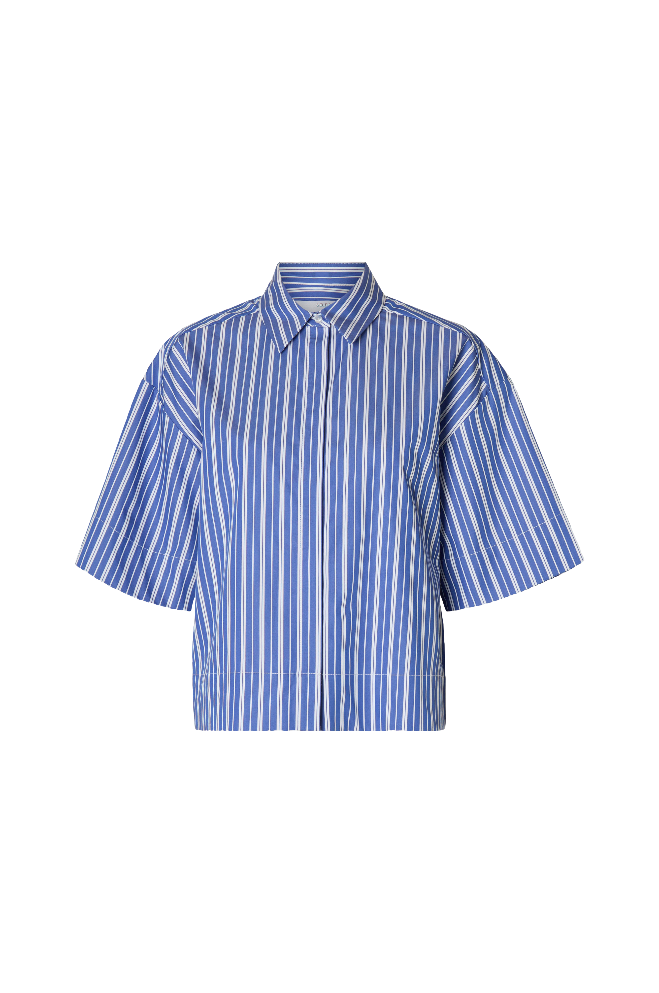 • Bred skjorte med skjult frontknepping• Korte, brede ermer