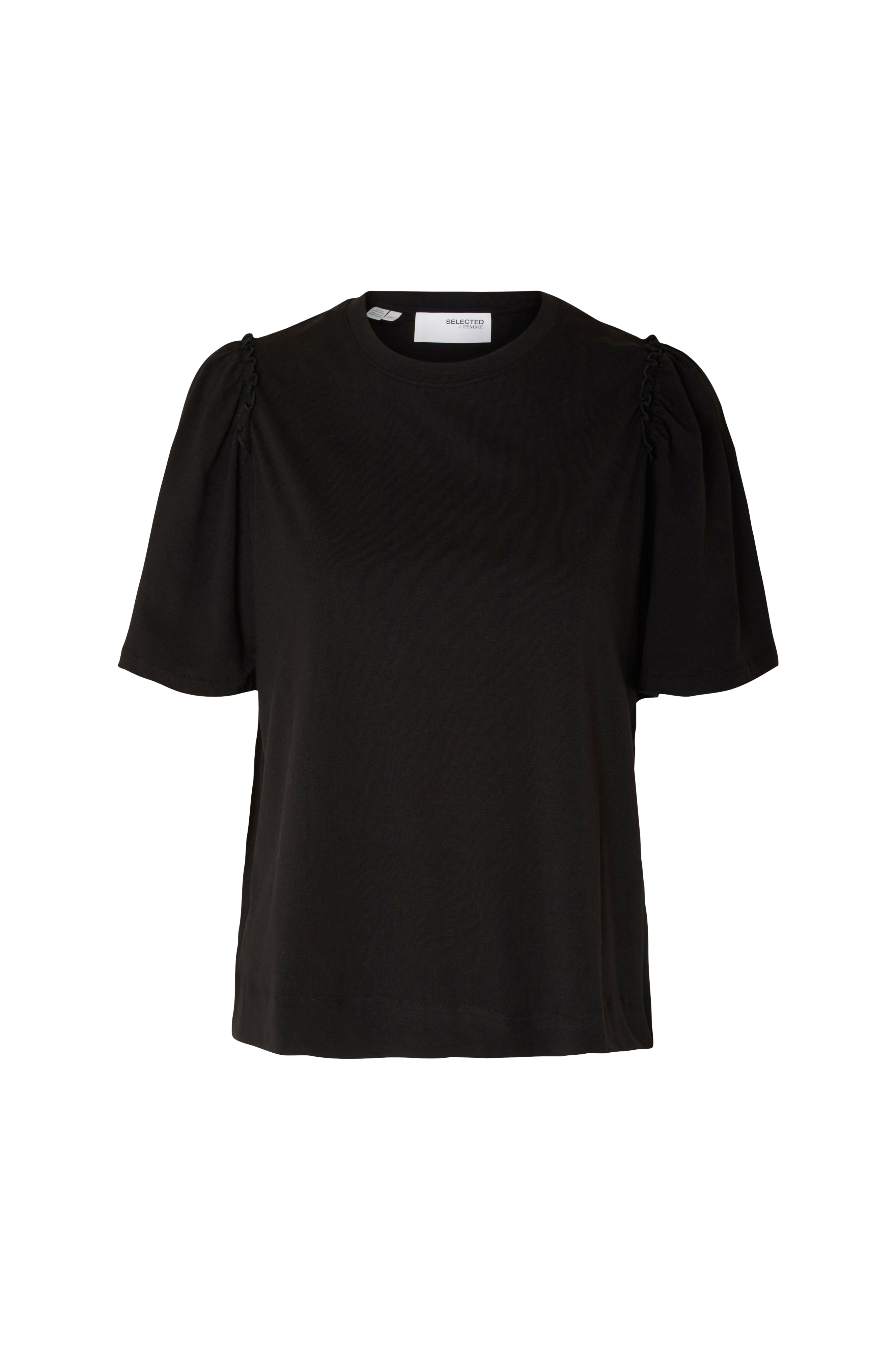 • Topp i bomullsjersey• Korte, brede ermer• Volanger på skuldrene• Rund hals
