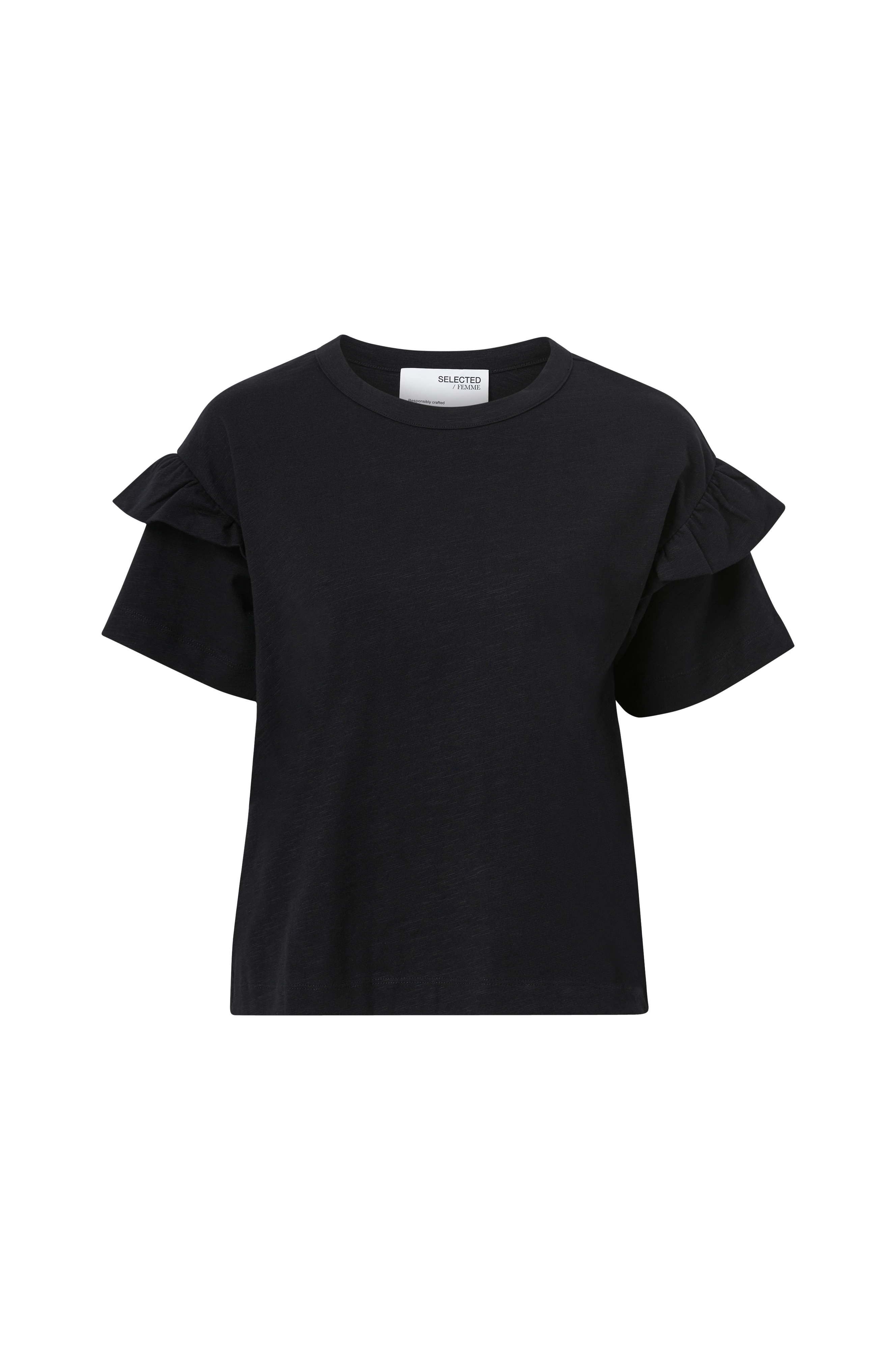 • Kort erme med volang • Rund hals • Kraftig jersey med struktur • Produktet inneholder økologisk bomull som er dyrket uten kjemiske sprøytemidler, kunstgjødsel og genmodifiserte avlinger (GMO). Det innebærer et sunnere arbeidsmiljø for bønder og et bedre jordsmonn.
