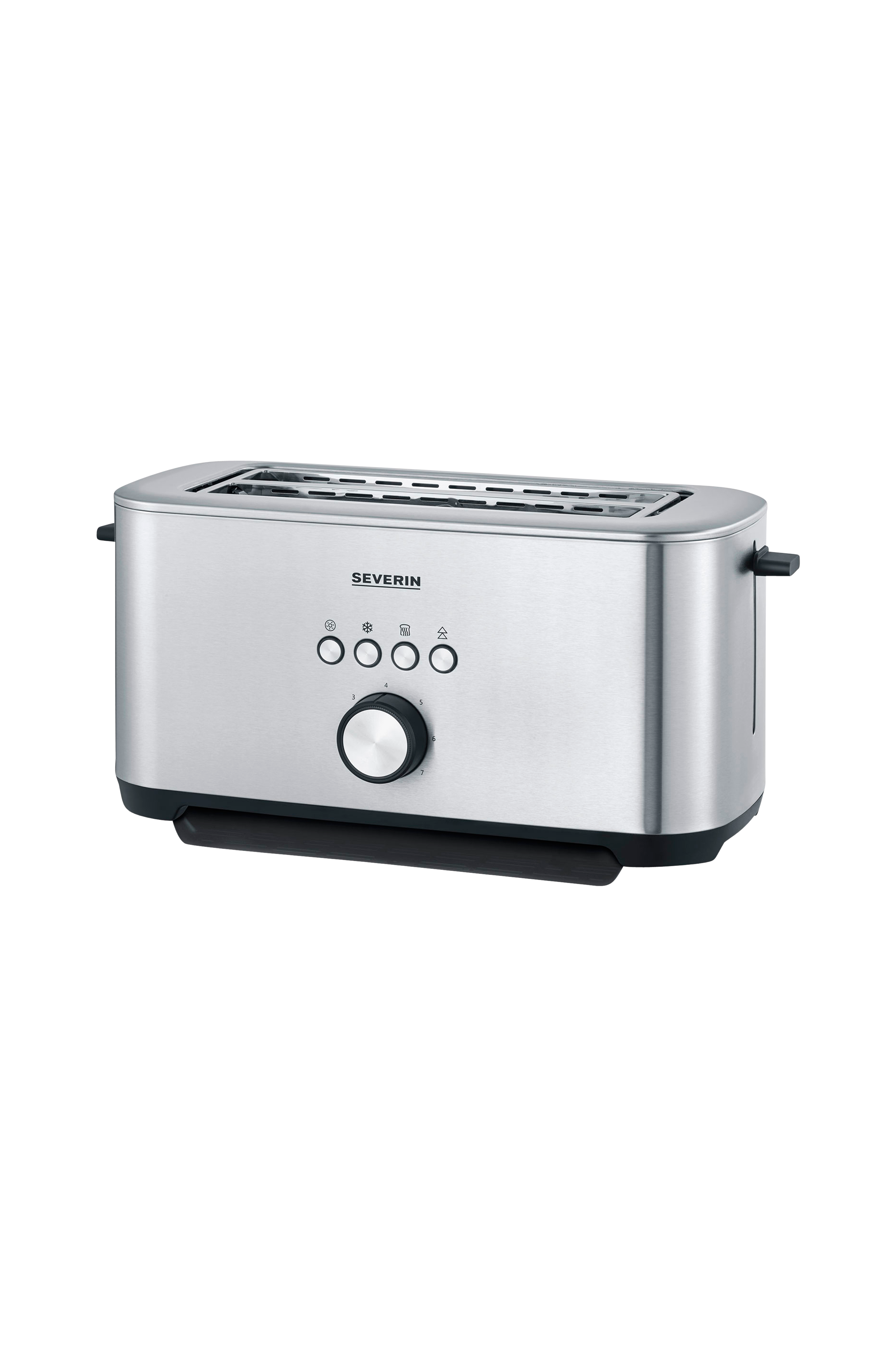 De ekstra brede risterommene gjør det mulig å riste bredere skiver som f.eks. brød eller bagel. Brødristeren har smarte funksjoner som kalde sider og smulerom.