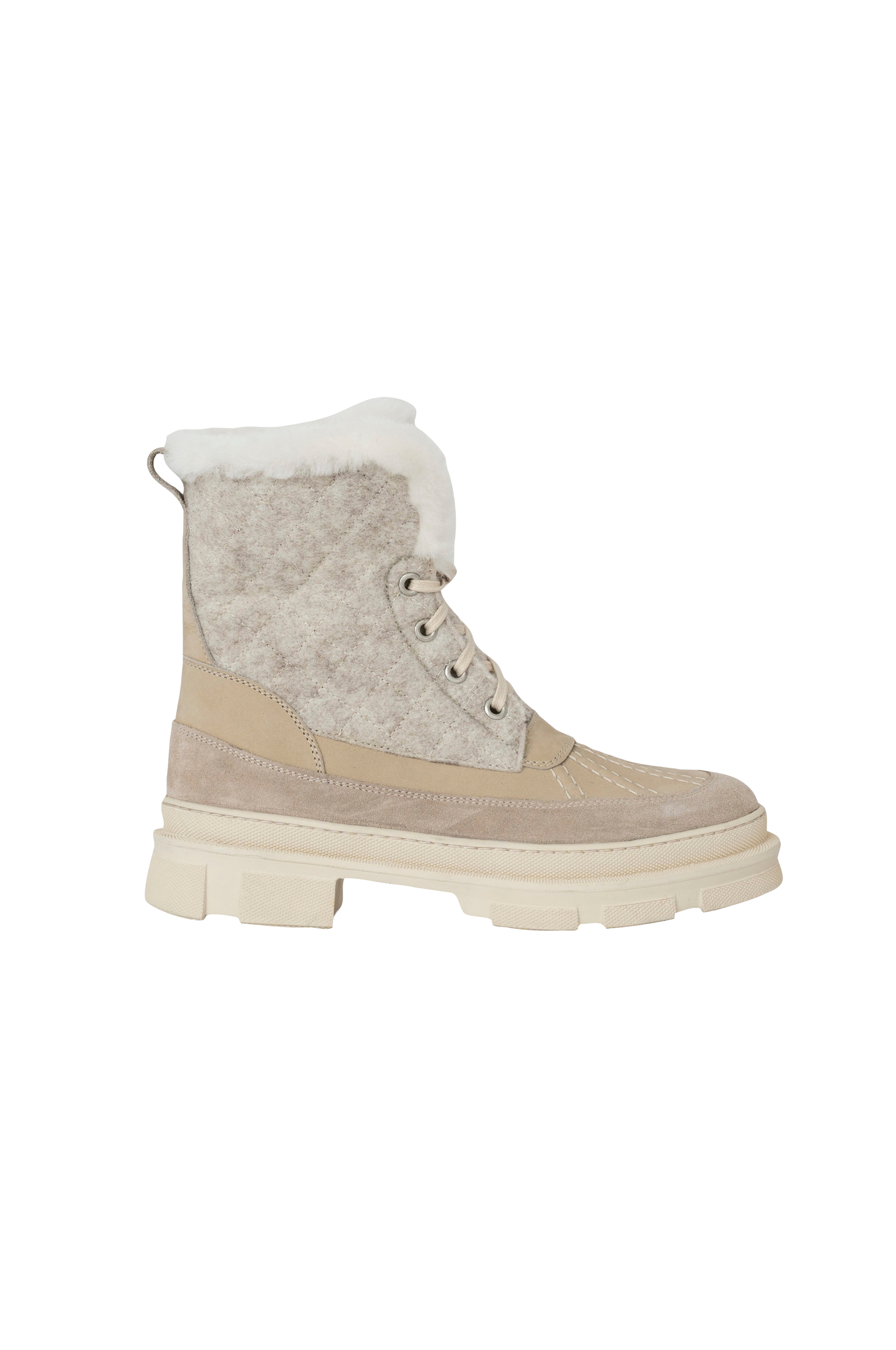 Shepherd meghan støvlene er fôret med ekte saueskinn, noe som gir varm og myk komfort. Yttermaterialet i en blanding av ull og skinn står på en trendy gummisåle, noe som gir en sporty og moderne look.